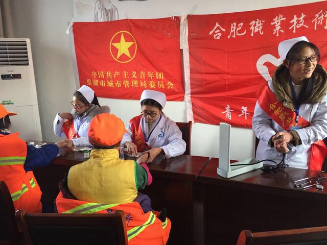 我院志愿者们帮助环卫工人测量血压、血糖,普及健康知识。虽然志愿者们与环卫工人们的对话简短,但志愿者们娴熟的技术、热情的态度深深的感动了环卫工人。环卫工人的一句句感谢,一个个微笑,让我们的志愿者认识到了志愿服务精神的所在,同时也增强了社会责任感。
