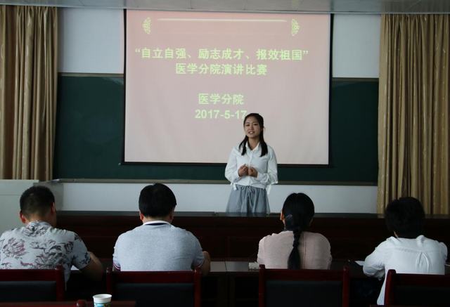 为深入宣传党和国家资助政策,加强大学生思想道德教育,鼓励广大学生自强拼搏。5月16日下午,医学分院开展的以“自立自强、励志成才、报效祖国”为主题的演讲比赛在分院会议室举行。学院宣传部部长魏华、学生处副处长尹仕果和分院学管老师作为评委出席此次演讲比赛。