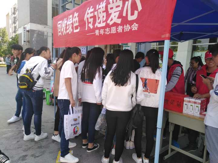 9月28日-29日,在一食堂门口,伟德官网青年志愿者协会发起了一场以“回收绿色.传递爱心”为主题的军训服捐赠回收活动。