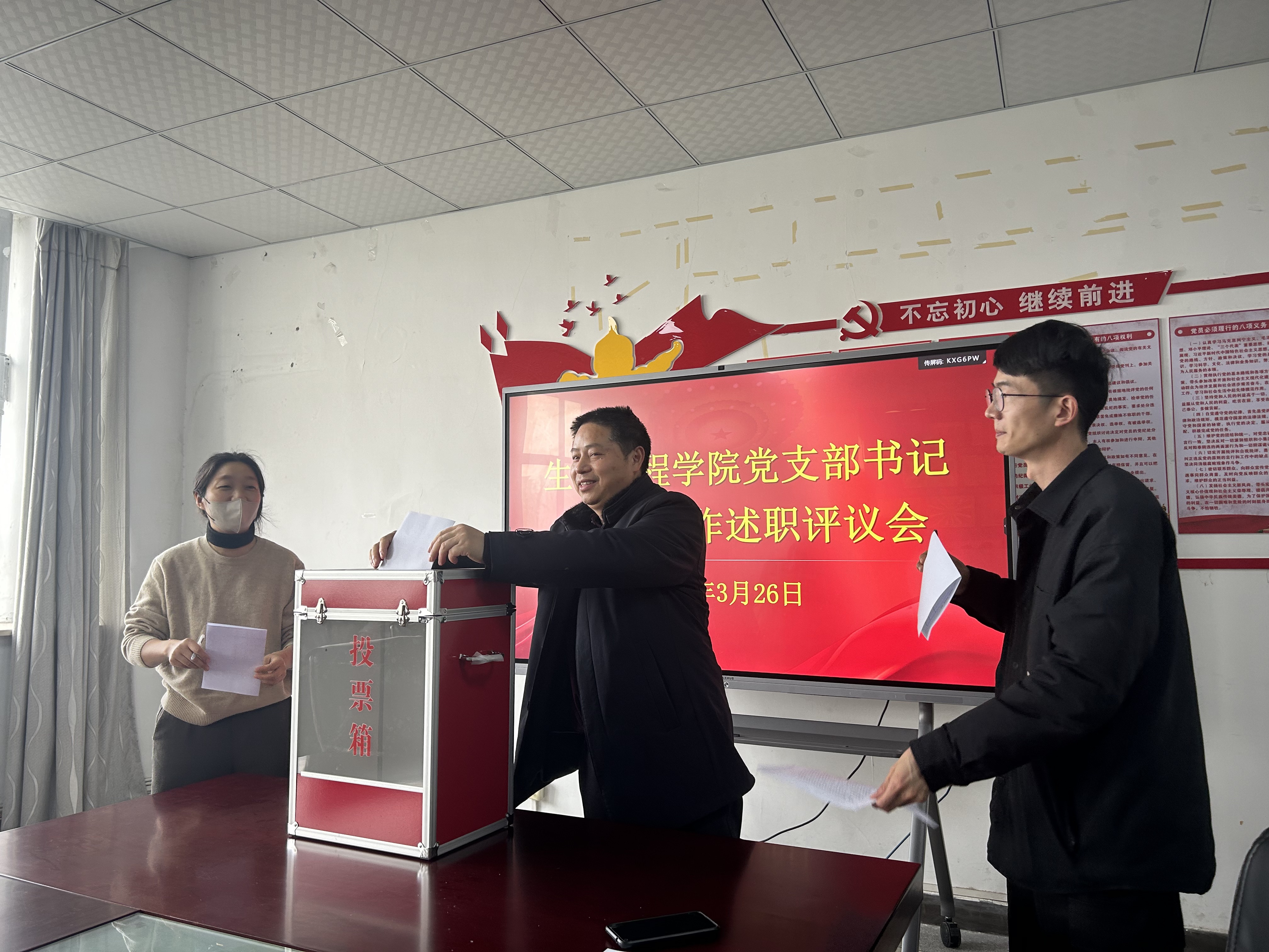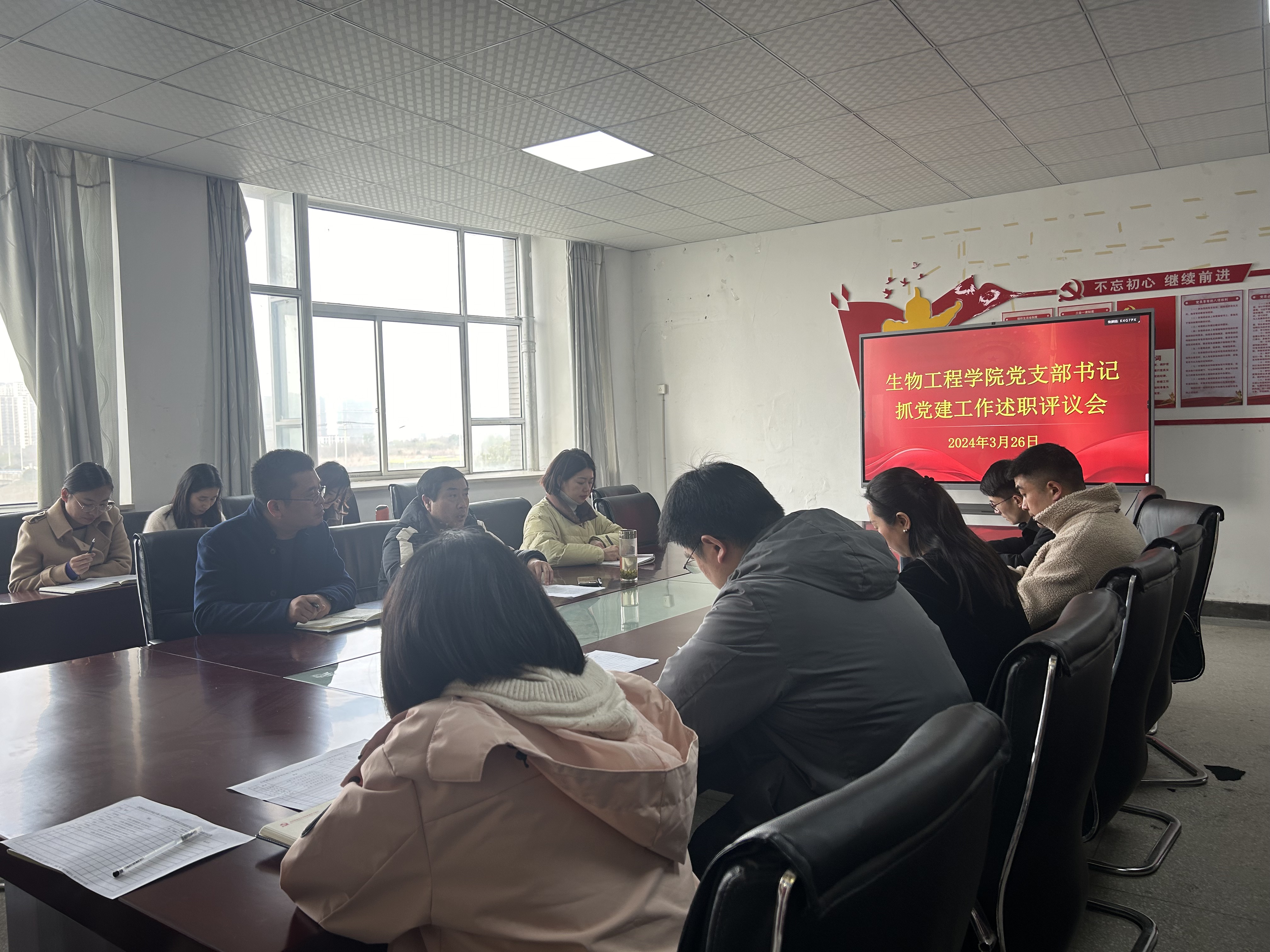 为贯彻落实党建工作责任,深化全面从严治党管党,3月26日下午,生物工程学院党总支在生化楼党员活动室召开2023年度党支部书记抓党建工作述职评议会。会议由党总支副书记(主持工作)慈龙保主持,全体党员参加会议。