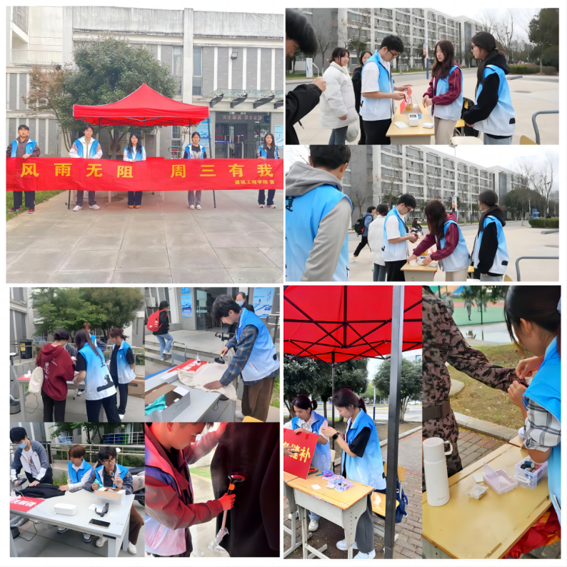 “风雨无阻 周三有我”志愿服务活动。“风雨无阻 周三有我”是该院志愿服务的特色品牌。本活动自2020年3月正式开展,至今已有4年。“建小志”志愿团队坚持每周三中午为鼓山校区师生开展各项志愿服务,团队成员涵盖学生党员、团员、入党积极分子和学生干部等。活动遵循“从小事做起,从实际出发”的原则,致力于服务师生日常校园生活所需。现有服务项目包括手机贴膜、衣物缝补、眼镜清洗和衣服熨烫等。该活动已获评2023年安徽省高校学生会组织“我为同学做实事”集中活动月暨项目交流展示活动“优秀项目”。