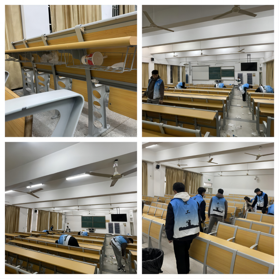 “洁”尽全力 不留死角——教室卫生死角专项清理活动。在平时的课堂学习中,志愿者们发现桌洞里有很多没有被及时带走的垃圾,垃圾被紧紧塞在桌洞的缝隙,常常变成清洁的死角。这一现象不仅影响了学校的校园环境,而且很容易造成疾病的传播。该院开展教室卫生死角专项清理活动,希望通过本次活动,呼吁同学们及时带走桌洞里遗留的垃圾,不要把垃圾塞进桌洞缝隙,为校园环境的清洁尽一份绵薄之力!