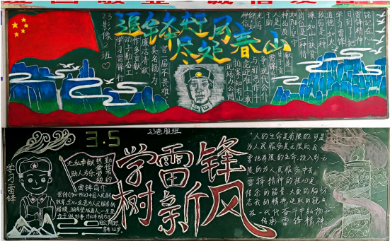 争做追“锋”人,板报展风采。三月初,医学院发布“青春建功新时代,学习雷锋志愿行”主题黑板报评选活动,各班级迅速组织,精心创作,交出一幅幅图文并茂、思想内涵深刻的板报作品。在查找资料创作黑板报的过程中,同学们更加了解雷锋同志的光辉一生,更加深刻地体会到雷锋精神。