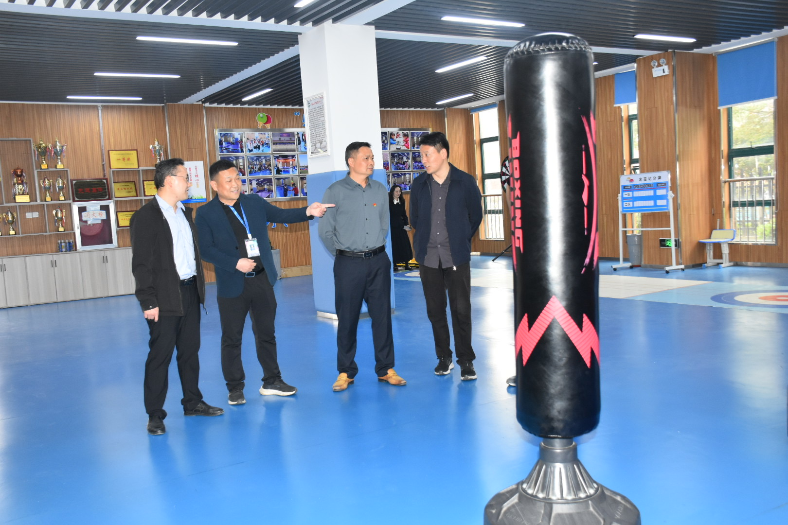 参观见学。会前参会人员在谈群岭书记的带领下共同参观了校园,对该校的特色活动阵地比如武术馆、图书馆、少年宫、心理辅导站、音乐室、美术室、书法室等的建设赞赏不已,纷纷表示校园建设既有文化特色,又不乏时代气息,更处处彰显了人文关怀的精神。