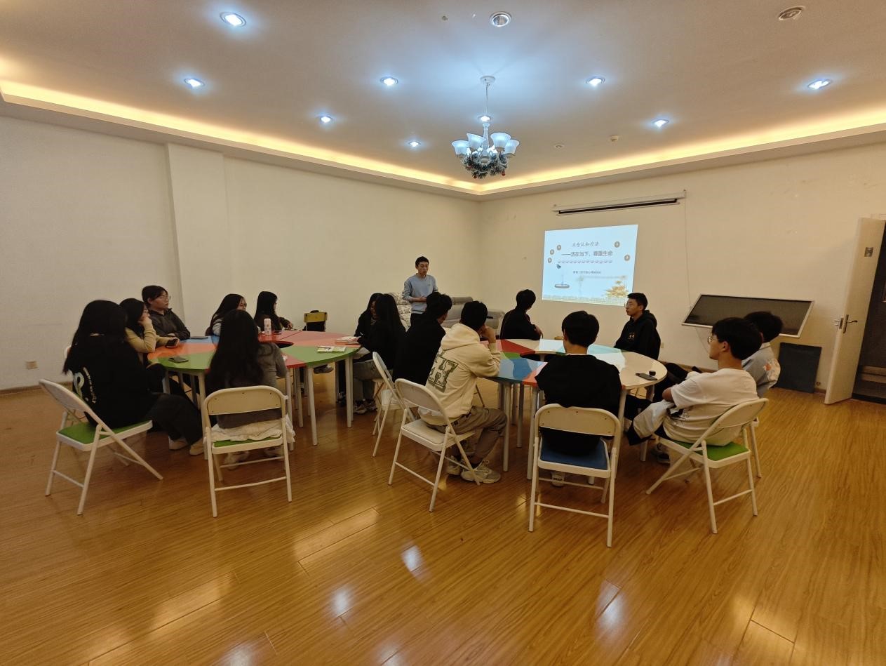 为让同学们能够正视心理问题,找到解决措施,不断优化个性心理品质,增强心理调适能力,提高心理健康水平。4月18日下午,建筑工程学院心理辅导站在大学生活动中心二楼心理活动室开展正念认知团体辅导活动,本次活动由该院心理老师李小龙主持,各班级心理委员参与。