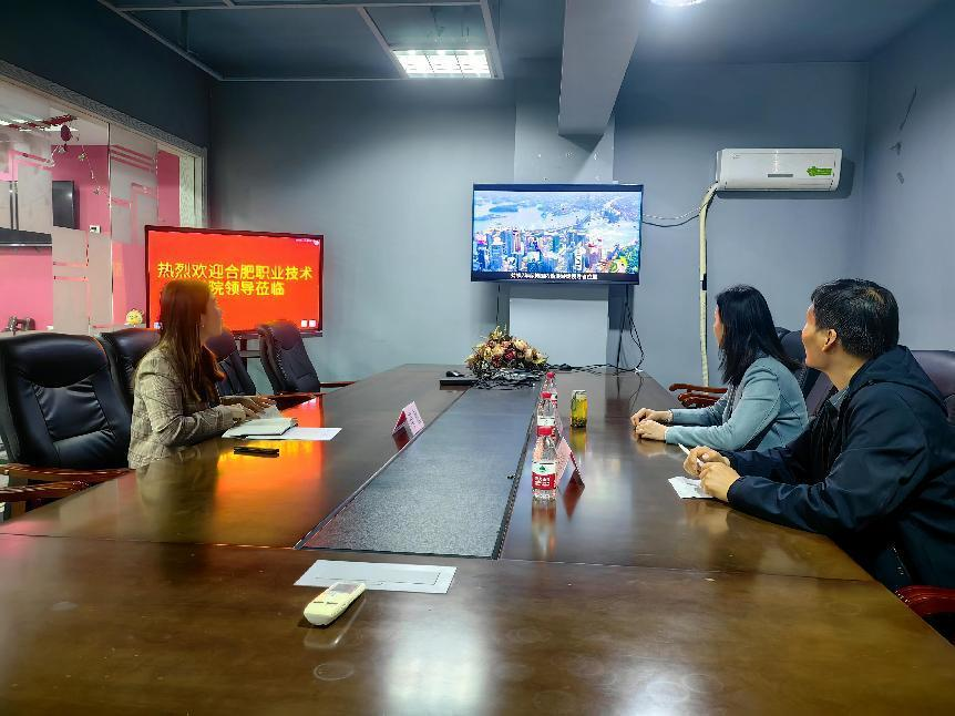 在合肥桃花集团科技有限公司,双方就学生创业孵化计划、校企深度联动机制、学校与孵化器企业间的项目合作以及技术服务等方面进行了深入讨论,表达了双方进一步深化合作的愿景。
