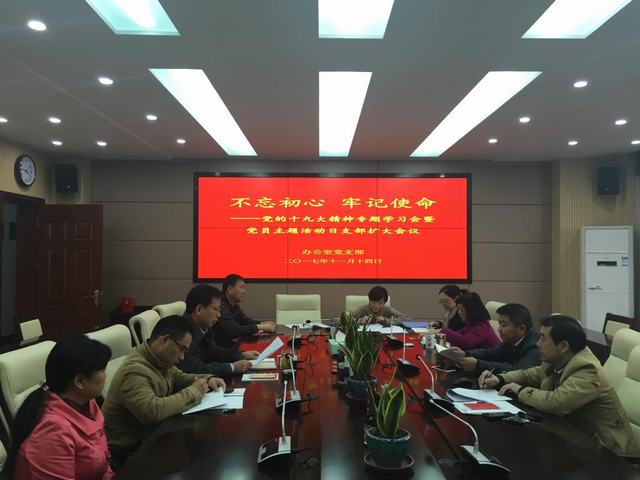 第二阶段,召开支部扩大会议,办公室全体成员参会。会上,支部书记王海同志做了学习党的十九大精神动员讲话。他强调,要充分认识学习宣传贯彻党的十九大精神的重要意义,全面准确学习领会党的十九大精神,坚持联系实际、推动工作,认真做好党的十九大精神的宣传。
