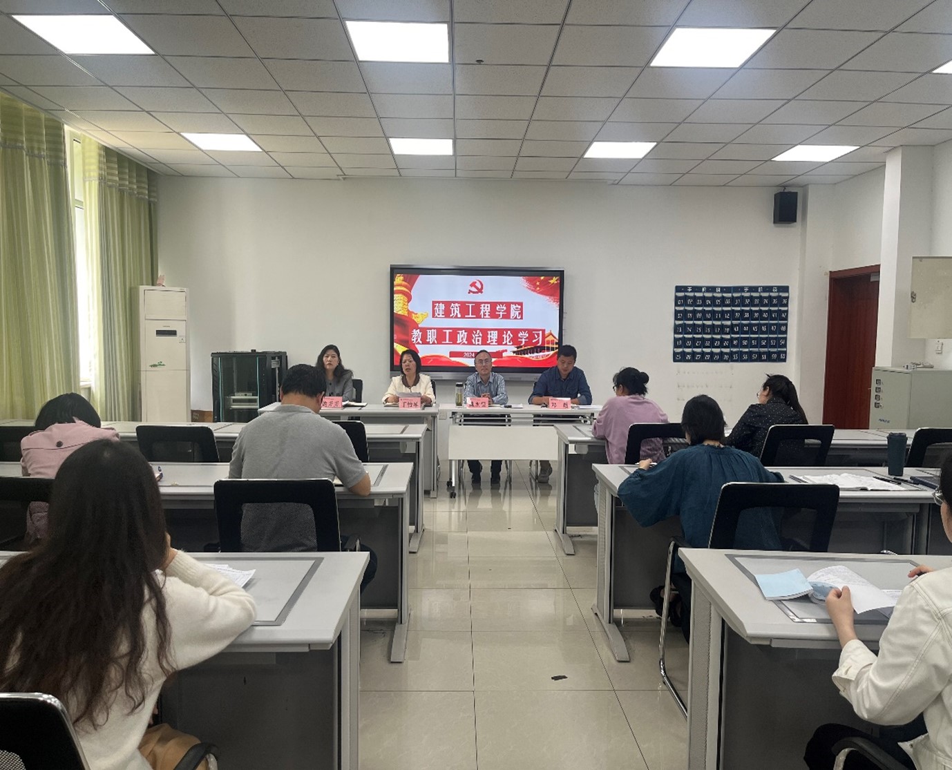 为深化政治理论学习,增强教职工教书育人责任感和使命感,4月25日下午,建筑工程学院党总支在建工楼301召开四月份全体教职工政治理论学习会议。该院党政班子及全院教职工参加了会议,会议由该院党总支副书记(主持工作)丁怡琴主持。
