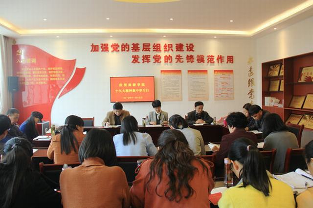 11月15日下午,经贸旅游学院在院党员活动中心组织全体教职工开展党的十九大精神集中学习活动,深入学习党的十九大报告精神和新党章。院党总支书记王秀珍主持学习活动。