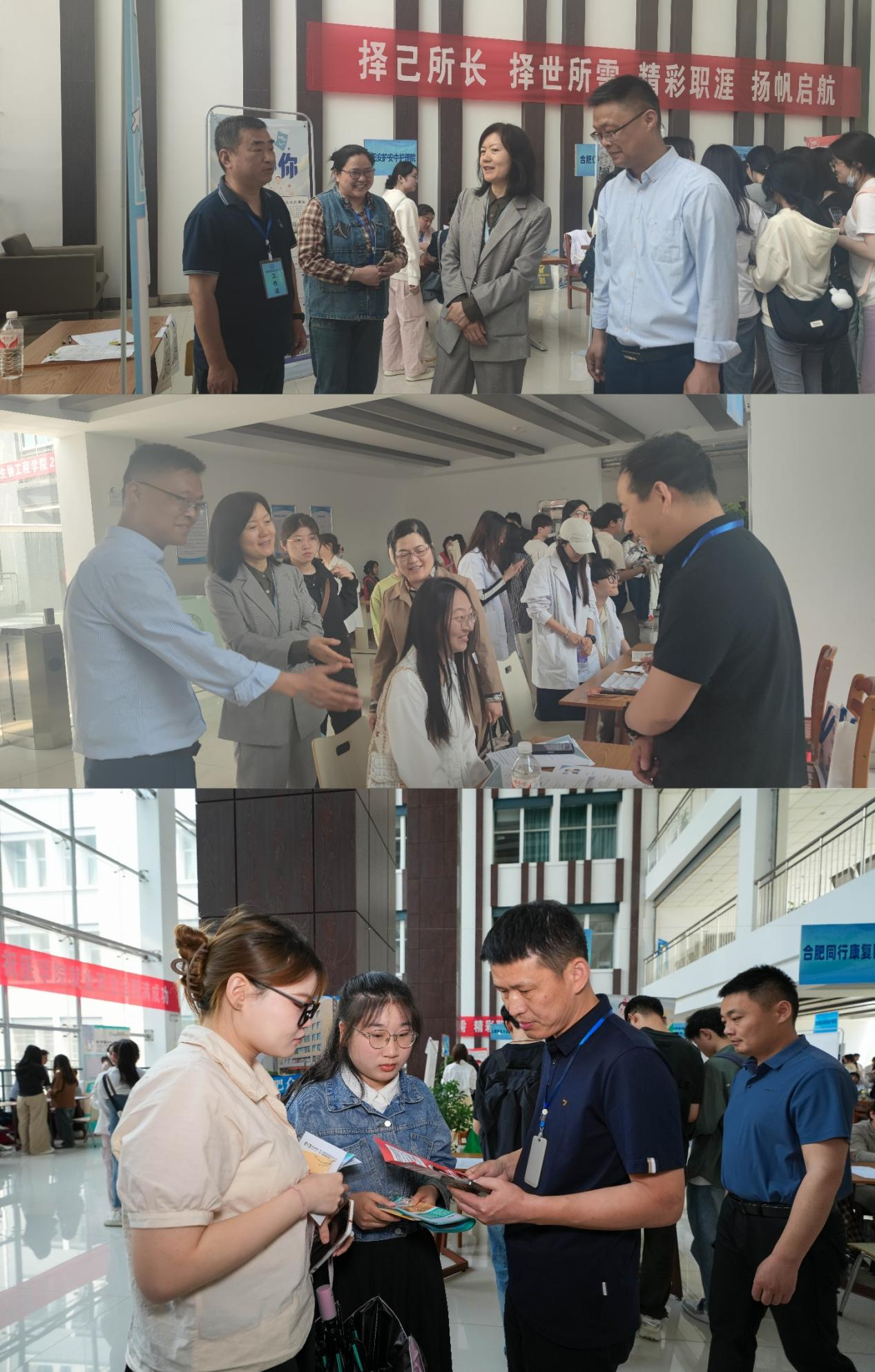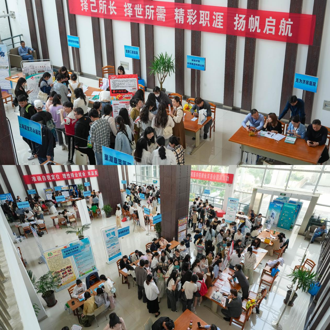 医学院围绕大健康产业和合肥地区市场需求,多方宣传、联系招聘单位。此次双选会吸引了近30家企业参加现场招聘,为同学们提供了涵盖护理、助产、临床医学、康复治疗技术、智慧健康养老服务与管理等专业的就业岗位500多个。