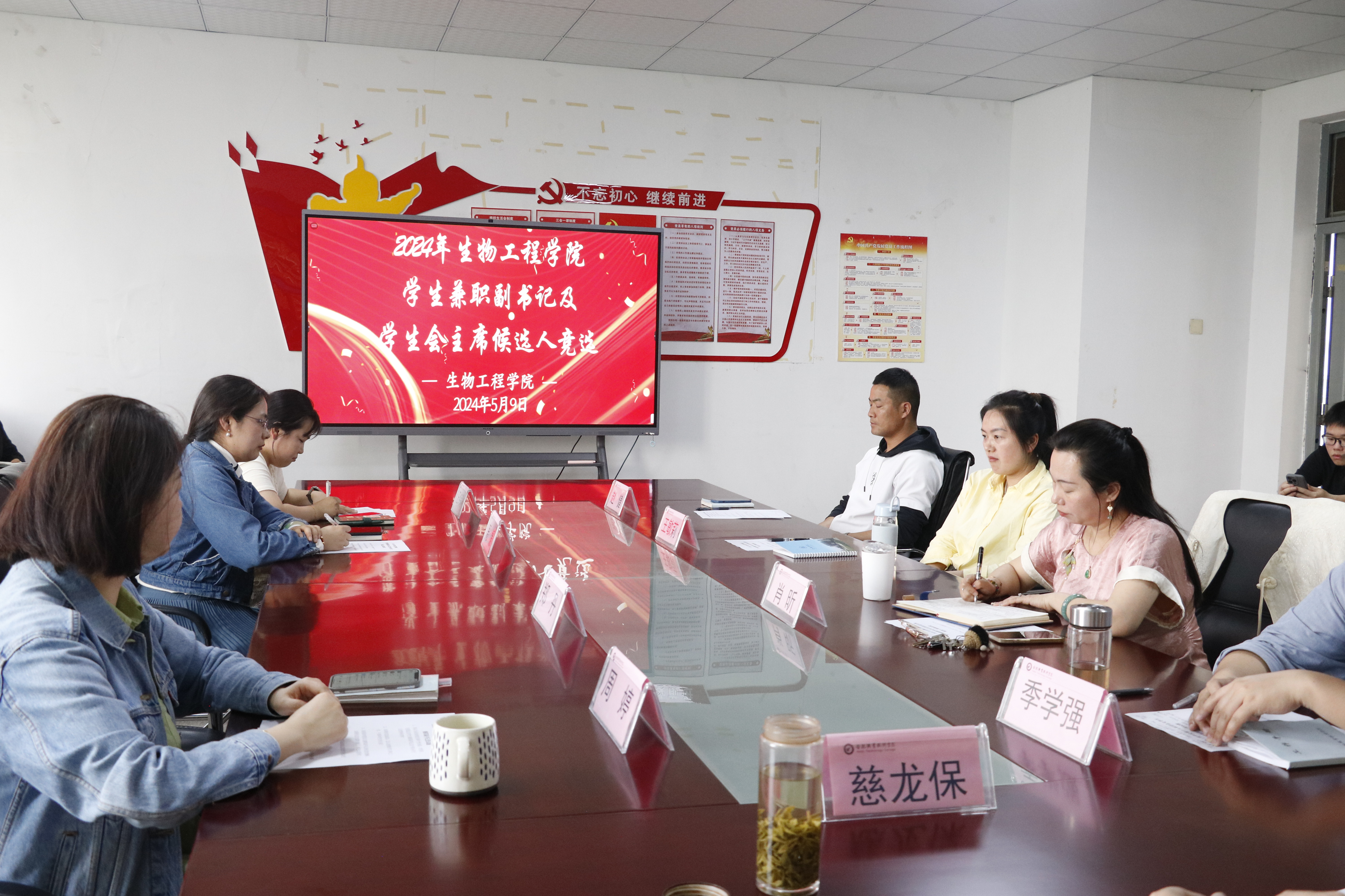 5月9日下午,生物工程学院团总支在生化楼A311党员活动室举办学生兼职副书记及学生会主席候选人竞选大会。生物工程学院党总支副书记(主持工作)慈龙保、副书记周婷、全体专职辅导员、学生兼职副书记、18届学生会主席团、部长出席本次大会,团总支书记肖昕主持会议。