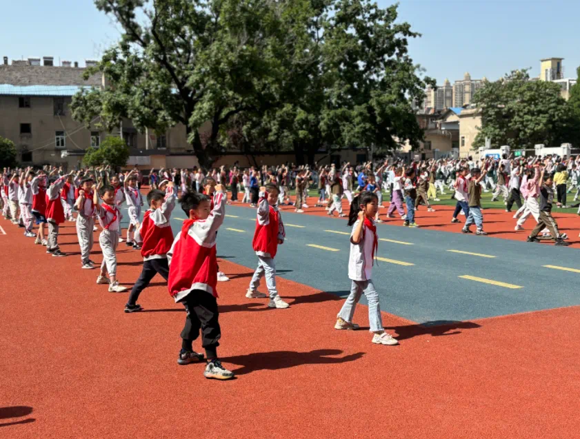 唱响旋律。我们生在国旗下,长在春风里,唱响《国家》主旋律,小小的心,大大的国,小朋友大朋友整齐划一的动作,合肥市蚌埠路小学的学生们正在表演手语操《国家》,共同演绎了“我爱我的国,我爱我的家,我爱我国家”的真挚情感。“莫等闲,白了少年头,空悲切!靖康耻,犹未雪。臣子恨,何时灭!”合肥市园上园小学喻岗分校的学生们诵读《满江红》,宽阔的操场上回荡着学生们声情并茂、热情激昂的朗诵声,抒发了充满了国士赴难、义无反顾的悲壮和忠孝两难的家国情怀。
