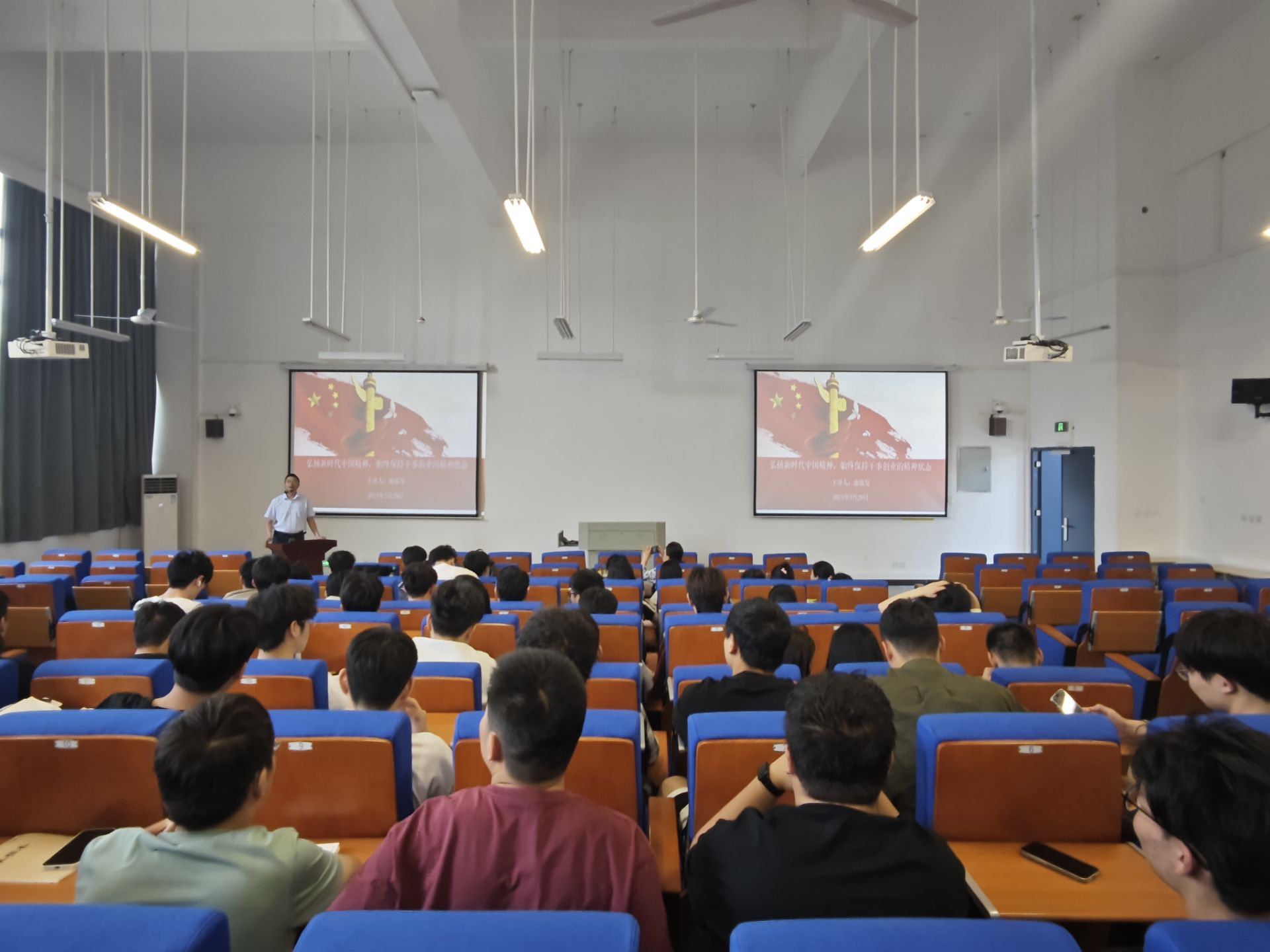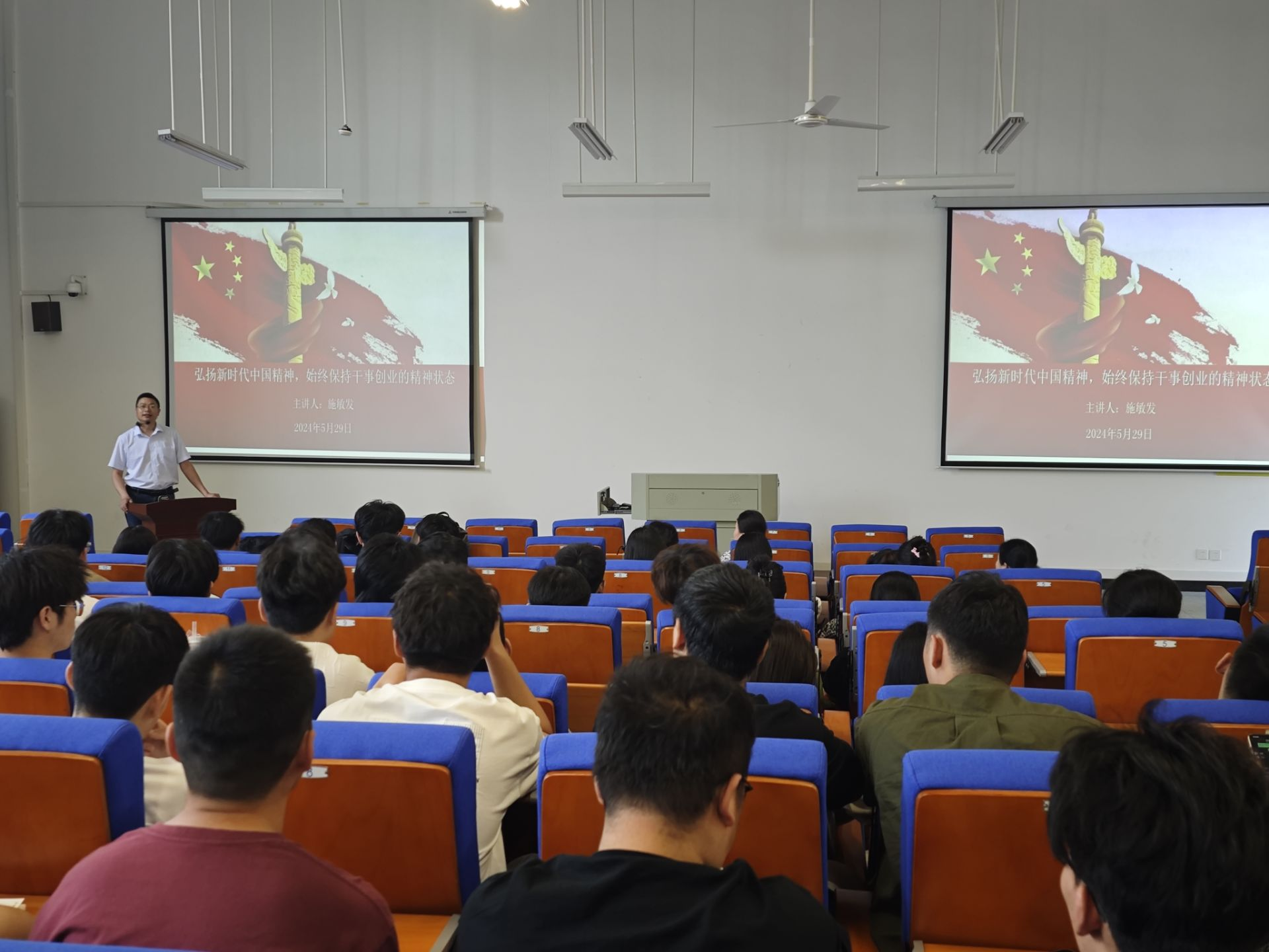 讲座中,施敏发通过分享革命先烈、科学家、劳动模范、大国工匠们的故事等,让在场师生们对中国精神有了更为直观的认知;围绕“新时代应该热捧谁”等问题,与学生互动,气氛热烈。同时,讲座也指出了“干事创业精气神不足”的六种具体表现,号召在场师生们要始终保持干事创业的精神状态,拒绝躺平,勤勉实干,争做中国精神的传承者和弘扬者。