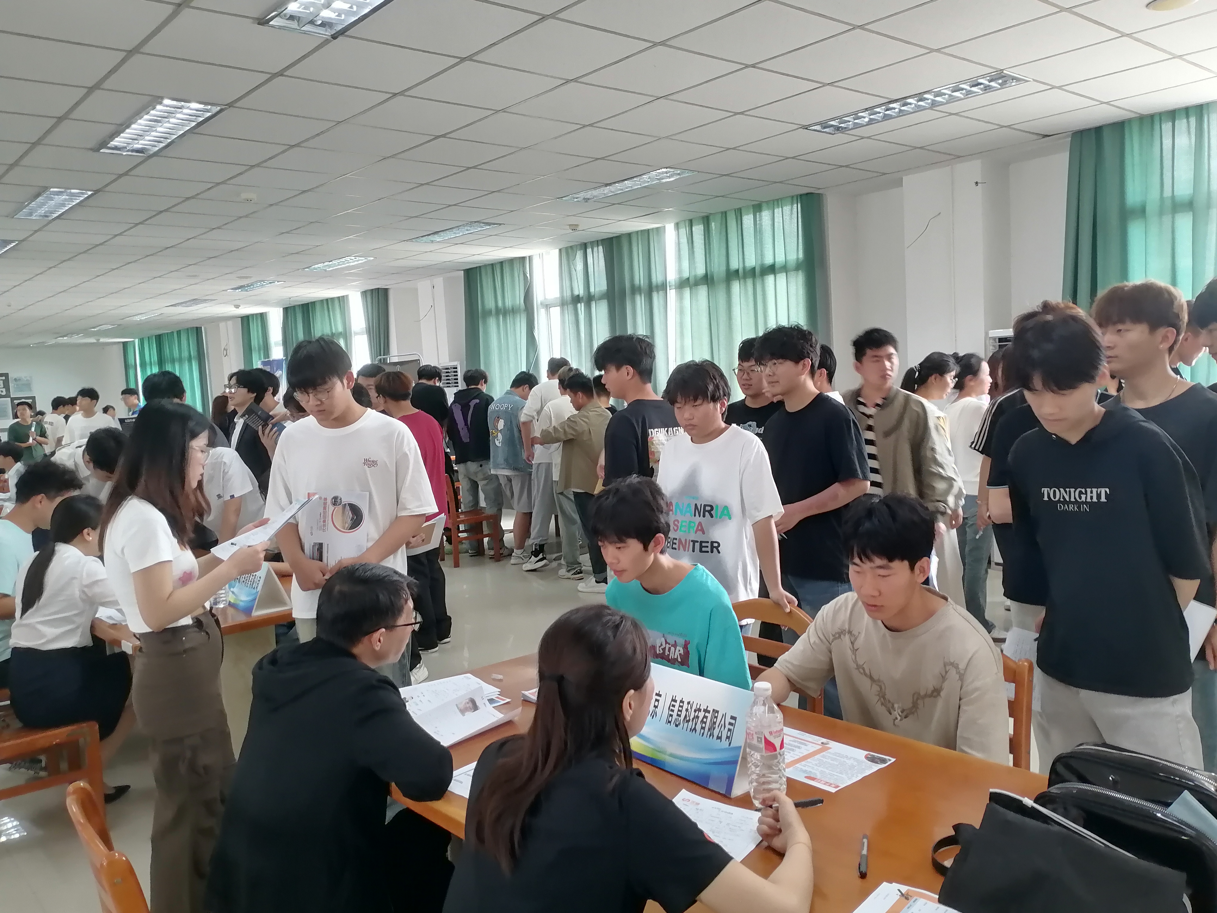 为促进汽车工程学院毕业生多渠道就业、更高质量和更充分实习就业、更好地服务于合肥地方经济社会发展,搭建学生与企业的交流平台,6月1号,汽车工程学院在图书馆二楼报告厅举办了实习、就业双选会。本次双选会共有24家招聘单位参加,提供近600个实习就业岗位,22级全体学生和辅导员参加本次双选招聘活动。