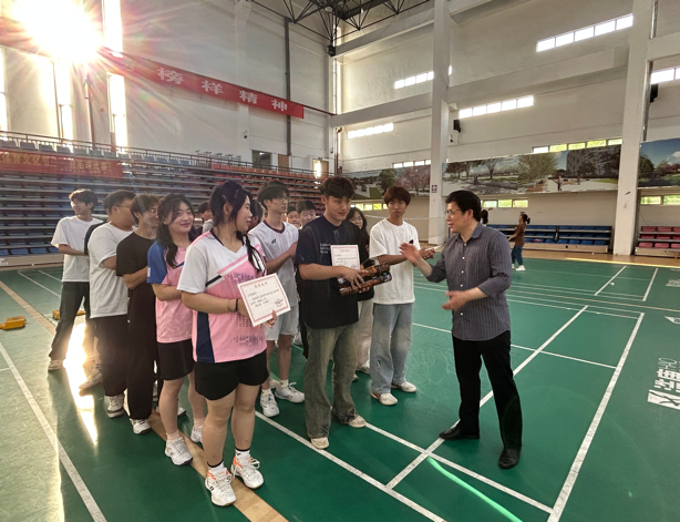 本次活动遵循“友谊第一,比赛第二”原则。团体赛和个人赛都有女单、女双、男单、男双、混双五个项目,团体赛采用11分三局两胜积分制,每个学院每个项目的参赛选手需要与所有学院同一项目的参赛选手进行比赛,每赢一局记一分,最后按积分排名,个人赛决出按21分三局两胜规则。特邀基础教育学院党组织书记吴俊峰给胜者颁奖。