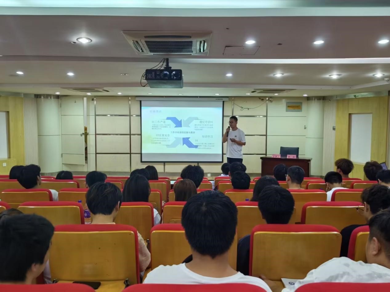 韩旭结合个人情况,从学习、工作和生活等方面同大家分享了自己的工作经历和求学历程。他对工作、求学的热情与奉献,展现了建工学子踏实、认真、能吃苦的精神。学生代表们与韩旭进行了深入的互动,积极表达自己在就业、求学方面的困惑,韩旭针对不同问题给出了中肯的建议。他建议学弟学妹们应树立科学的就业观,充分了解就业市场,积累就业经验,从亲身实践中探索、明确未来发展方向,做到眼中有光、心中有数、手中有招。