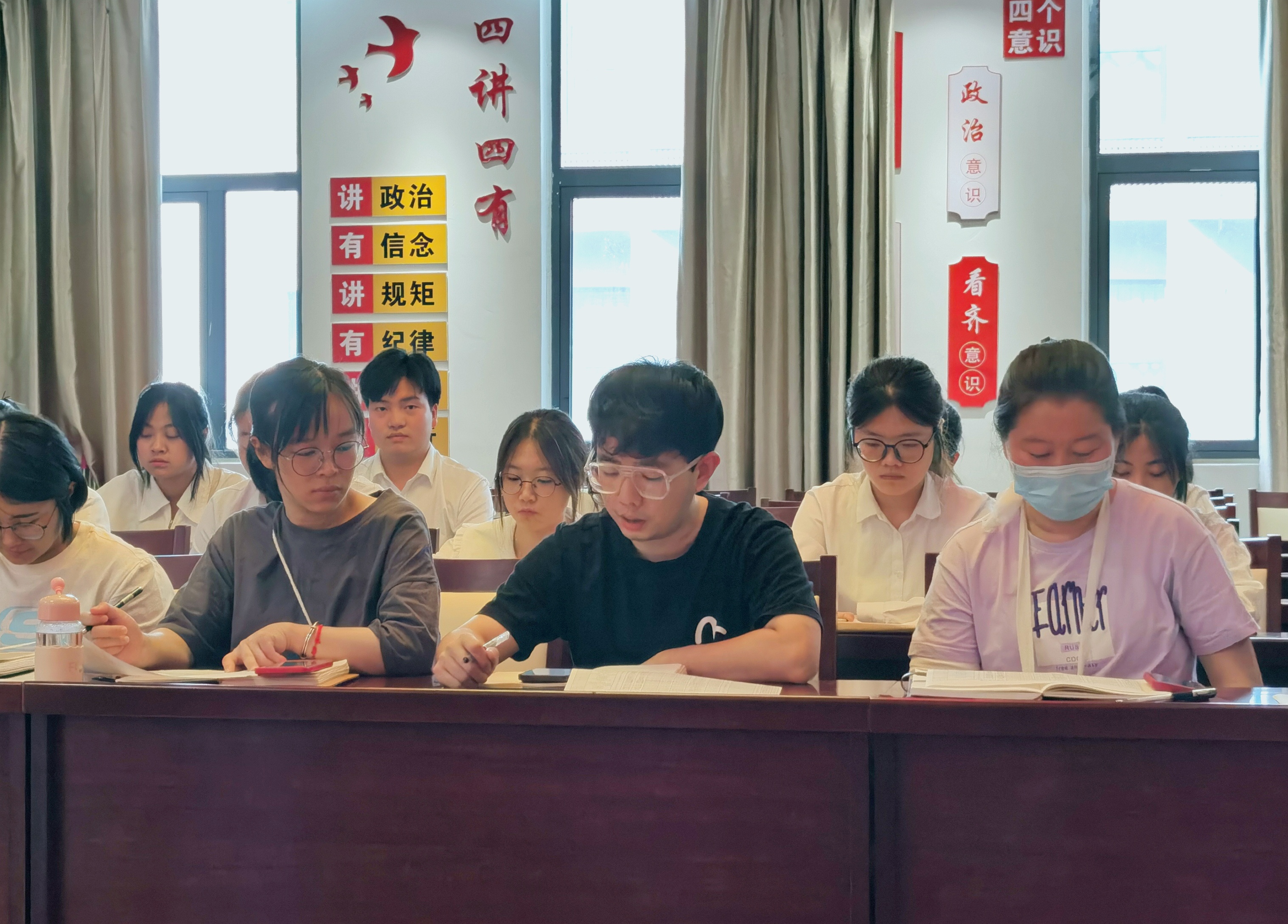 6月18日下午,经贸旅游学院第五党支部、第六党支部在经贸楼三楼党性体验馆召开党员大会,讨论接收闫雨牧等23名同志为中国共产党预备党员。会议由第五党支部书记王明明主持,两个支部的全体党员参加了会议。