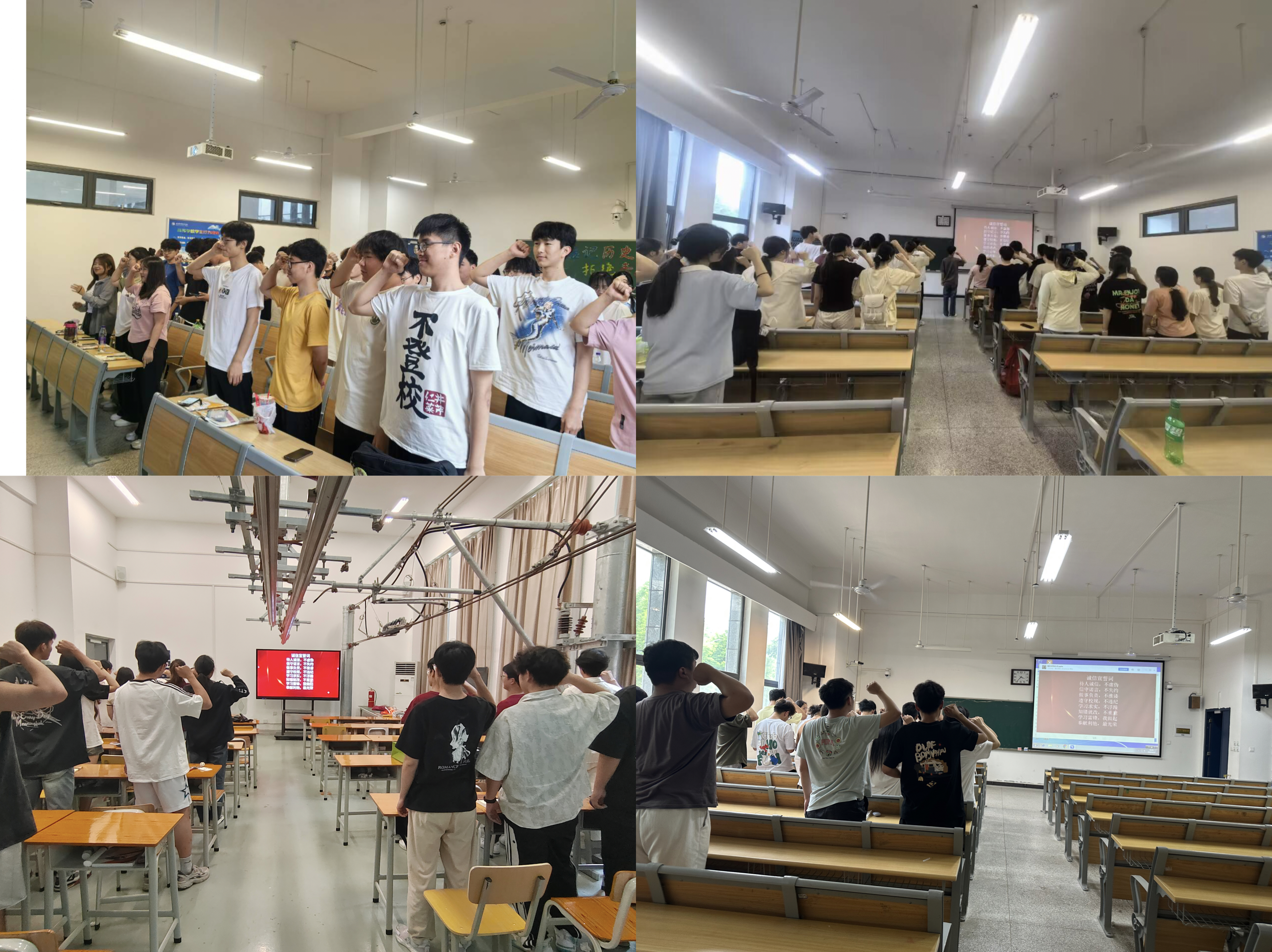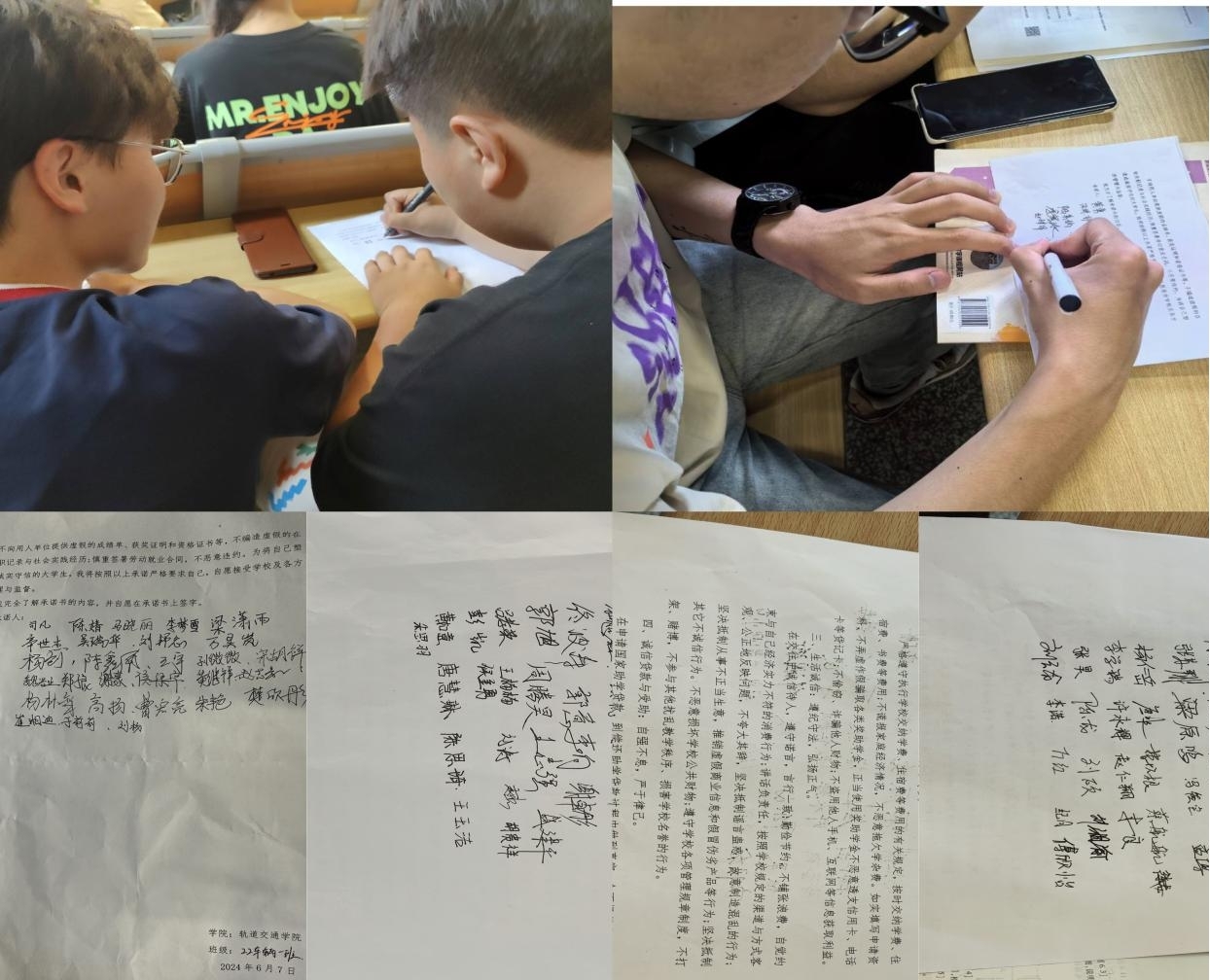 诚信承诺书签字与诚信宣誓活动。为增强学生的诚信意识,促使学生内化为自觉行动,轨道交通学院开展了诚信承诺书签字与诚信宣誓活动。在诚信承诺书签字环节,每位学生在了解承诺书内容后自愿签名,承诺在学习、生活中坚持诚信原则。签字活动分班级在教室举行,由班主任带领学生依次完成,确保每位学生都有机会深思熟虑地参与进来。