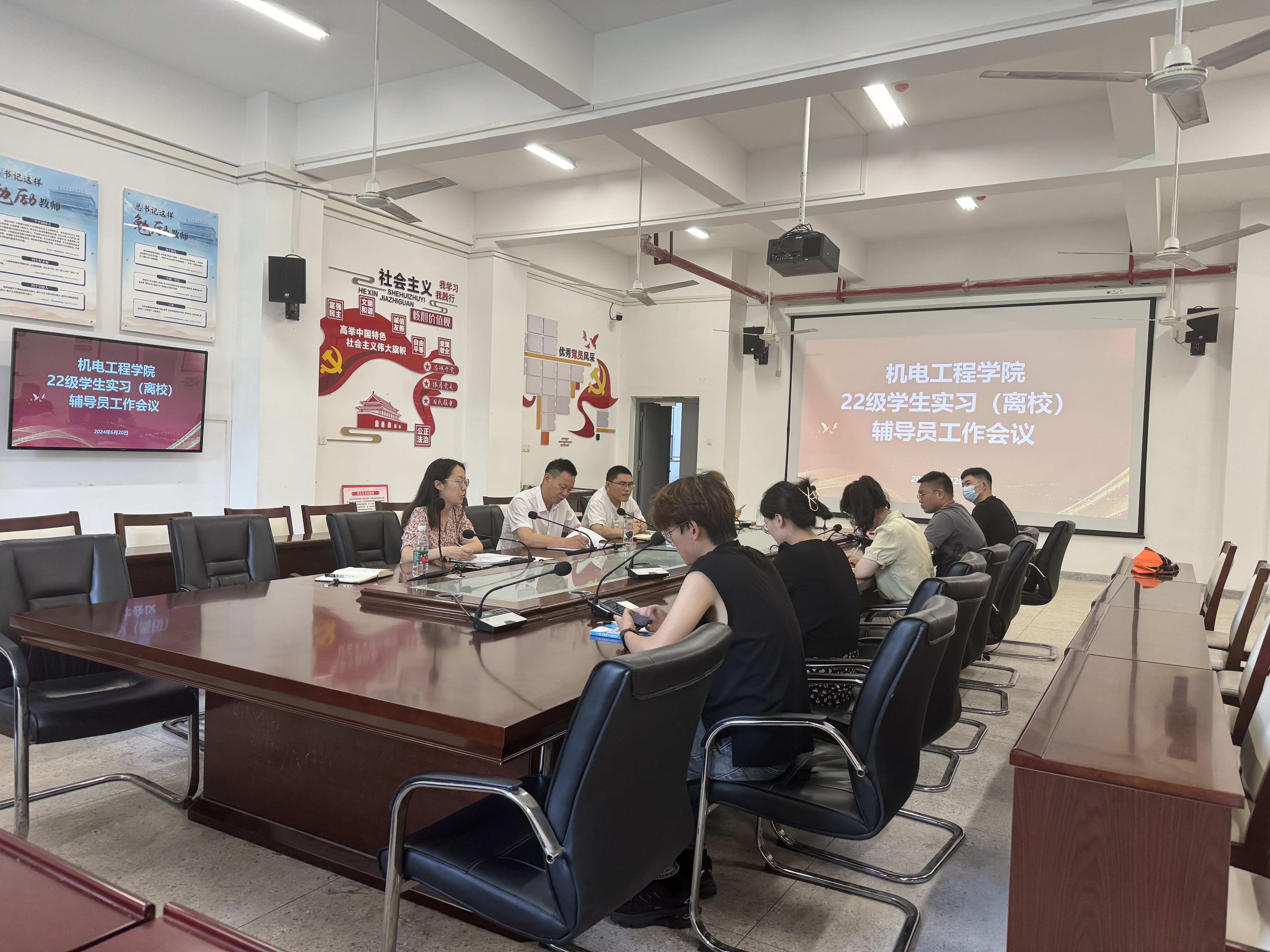 为做好2022级学生实习(离校)各项工作,6月20日上午,机电工程学院在机电楼二楼会议室召开2022级学生实习(离校)辅导员工作会议。学院党总支副书记(主持工作)丁迎春、全体专职辅导员、2022级辅导员参加了此次会议。会议由党总支副书记宋忠春主持。