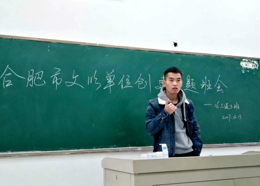 为增强我院师生文明创建意识,在全院营造文明创建良好氛围,推进学校文明单位创建工作,2017年12月11日至15日,建筑工程学院组织在校学生召开“合肥市文明单位创建主题班会”。