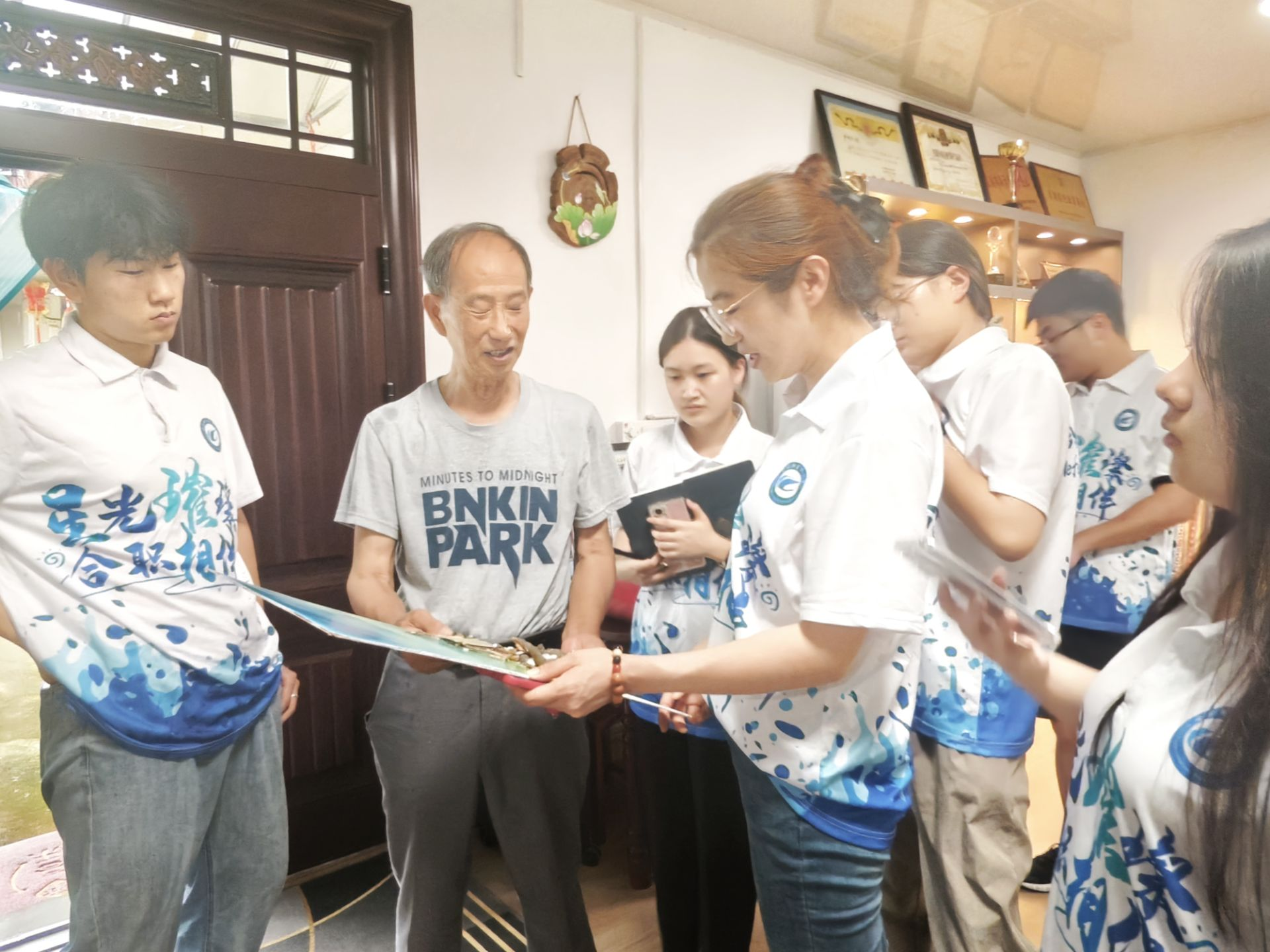 躬耕现代农业,助力绿色转型。面对突如其来的大雨,团队成员们没有退缩,而是冒雨前往包坊村扶贫产业园大棚蔬菜基地,亲身体验现代农业的绿色发展之路。在这里,大家不仅学习了有机蔬菜的种植技术,还通过拍摄宣传视频、撰写推广文案等方式,积极为乡村无公害农产品“代言”,有效提升了农产品的知名度和市场影响力,为乡村经济的绿色转型贡献了自己的力量。
