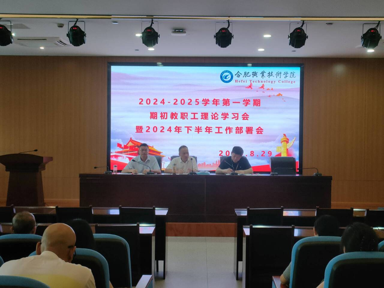 8月29日下午,基础教育学院在汇心湖校区图书馆一楼报告厅召开期初全体教职工大会,开展政治理论学习并部署2024年下半年各项工作。会议由基础教育学院副院长施敏发主持。