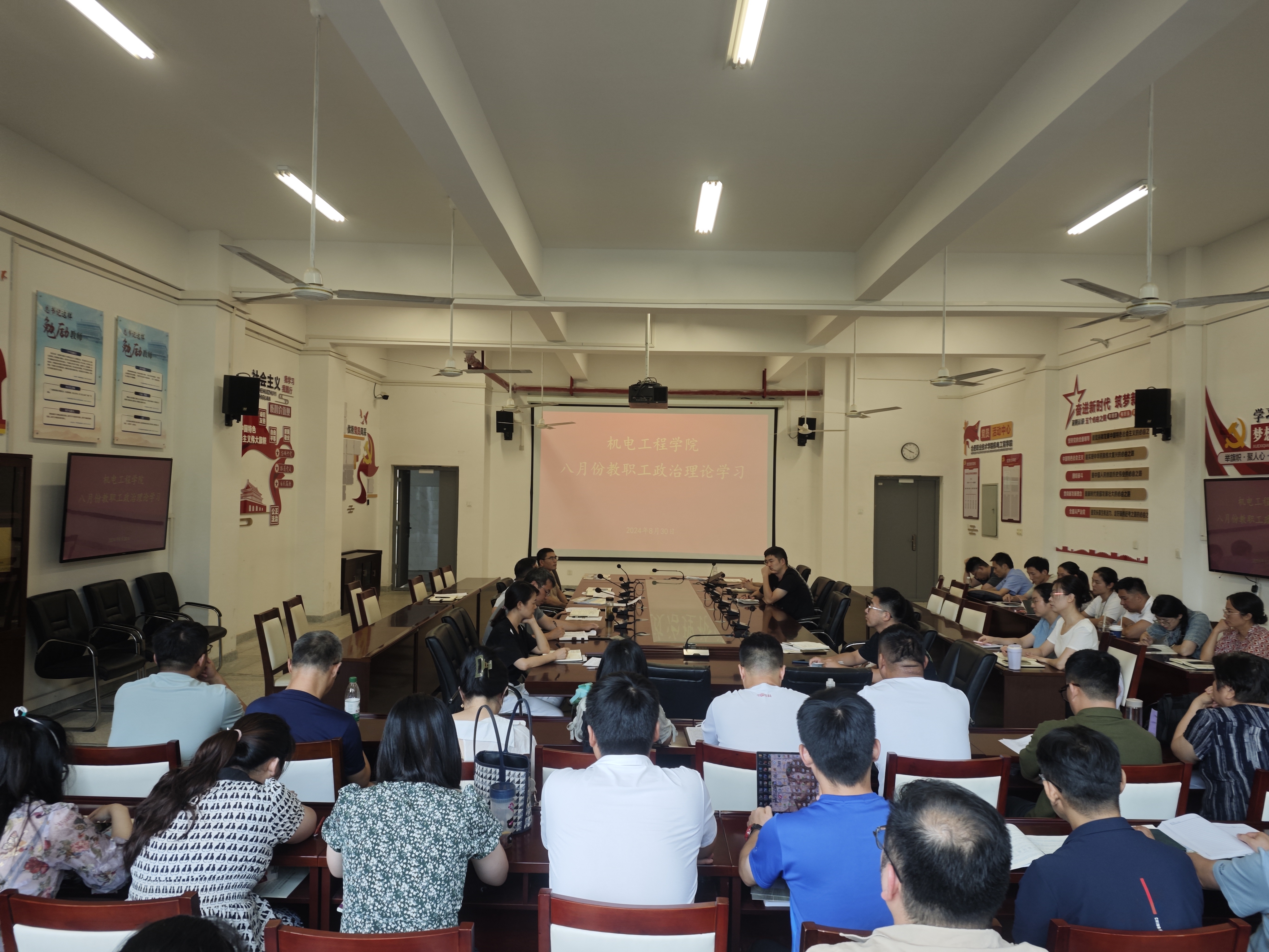 8月30日下午,机电工程学院在机电楼二楼会议室组织召开八月份教职工政治理论学习暨开学工作会议,学院全体教职工参加,会议由该院党总支副书记(主持工作)丁迎春主持。