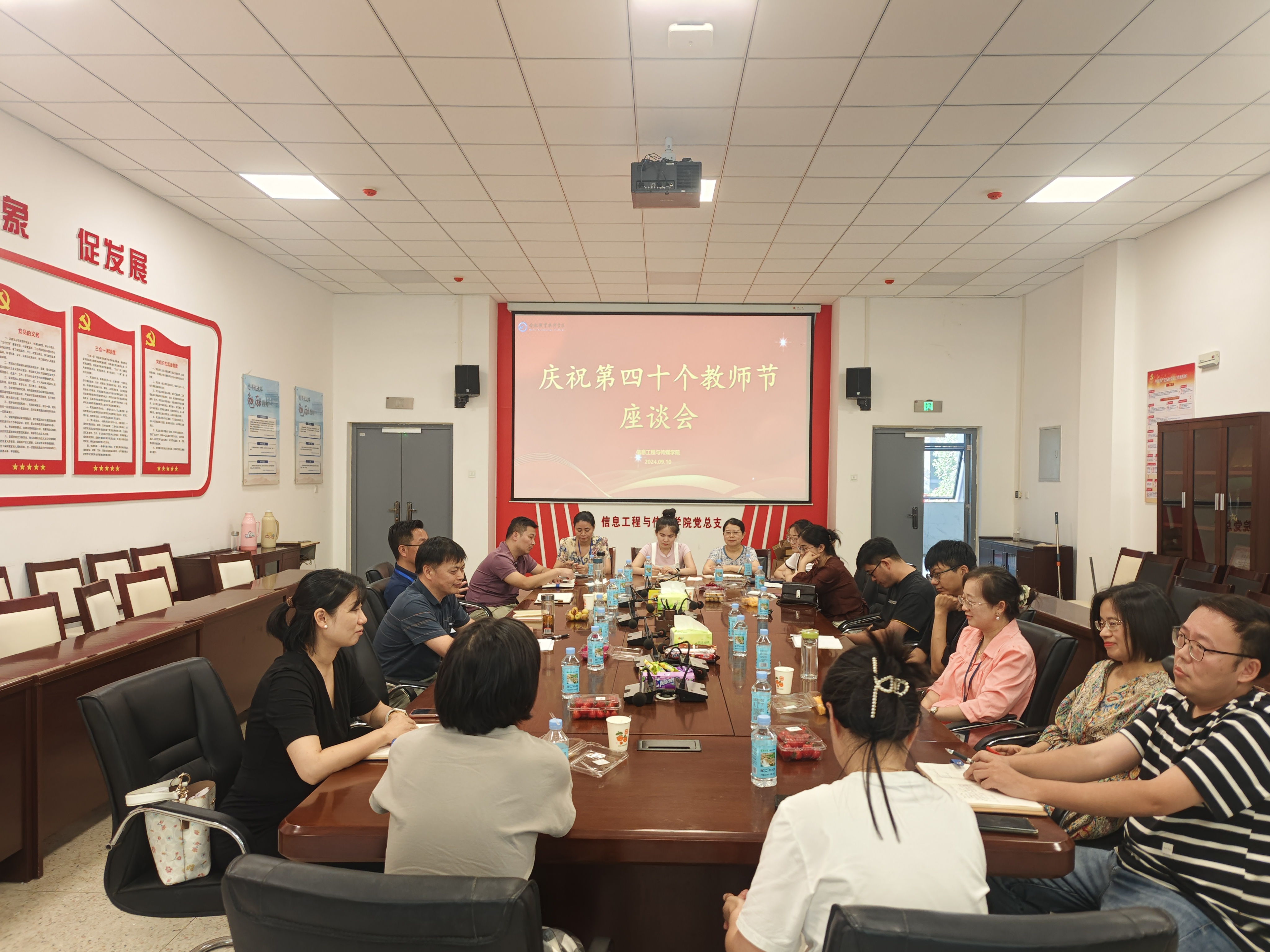 为庆祝第四十个教师节,充分展示新时代教师的风采,营造尊师重教的良好风尚,大力弘扬教育家精神,信息工程与传媒学院于9月10日举行了以“话信传情缘 绘合职新卷”为主题的优秀教师座谈会。座谈会由学院党总支副书记(主持工作)尹仕果主持,2024年部分获得表彰和奖励的18位优秀教师代表参加座谈。