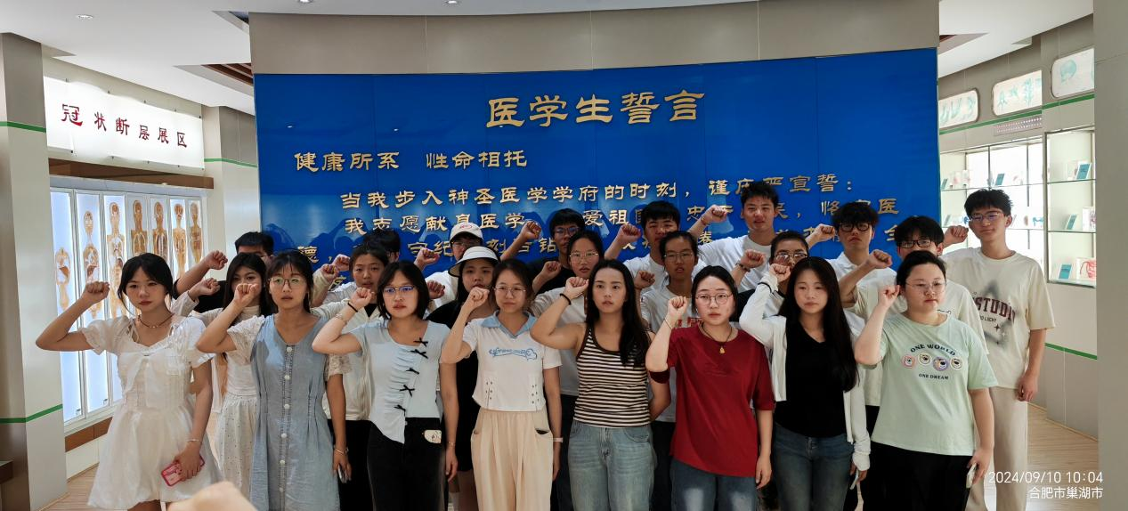 参观结束后各班级辅导员组织同学们,在科学馆内医学生誓言墙前神情庄严地许下誓言:”健康所系,性命相托。当我步入神圣医学学府的时刻,谨庄严宣誓,我志愿献身医学,热爱祖国,忠于人民,恪守医德……”誓言不仅在提醒着大家作为医学生的身份,更提醒着大家肩上的责任感,激励着同学们努力学习专业知识,为医学事业奋斗终生。