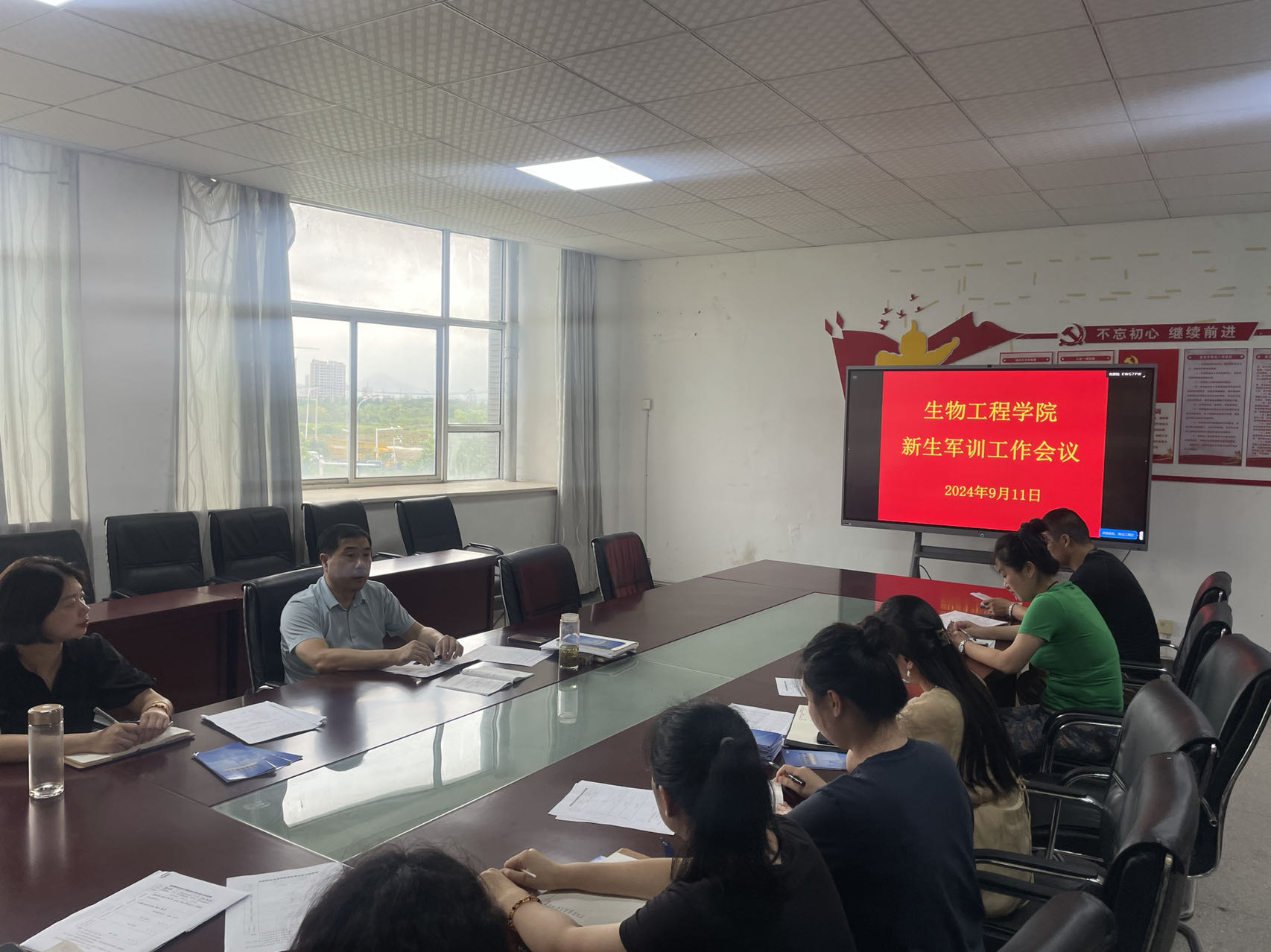 为确保2024级新生军训工作安全、有序、高效进行,明确军训工作的目的和意义,9月11日,生物工程学院召开了2024级新生军训工作部署会。生物工程学院党总支副书记(主持工作)慈龙保、党总支副书记周婷、24级新生辅导员参加会议。本次会议由周婷主持。