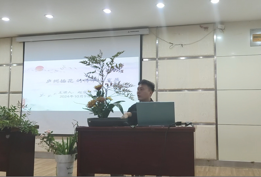 10月9日,织情花艺社在图书馆一楼报告厅开展了“传承非遗铸就匠心-庐州插花制作”讲座,由庐州插花非遗传承人赵宗祥老师主讲,讲座中赵老师介绍了切花的类型、插花概念与分类,带领同学们赏析了中国传统六大容器插花作品。在讲座的互动环节,赵老师给同学们现场制作展示了一款“迎客松”式的庐州插花作品,现场气氛热烈,掌声不断。同学们热情高涨,趁热打铁,积极动手操作起来,赵老师耐心地对同学们进行指导。