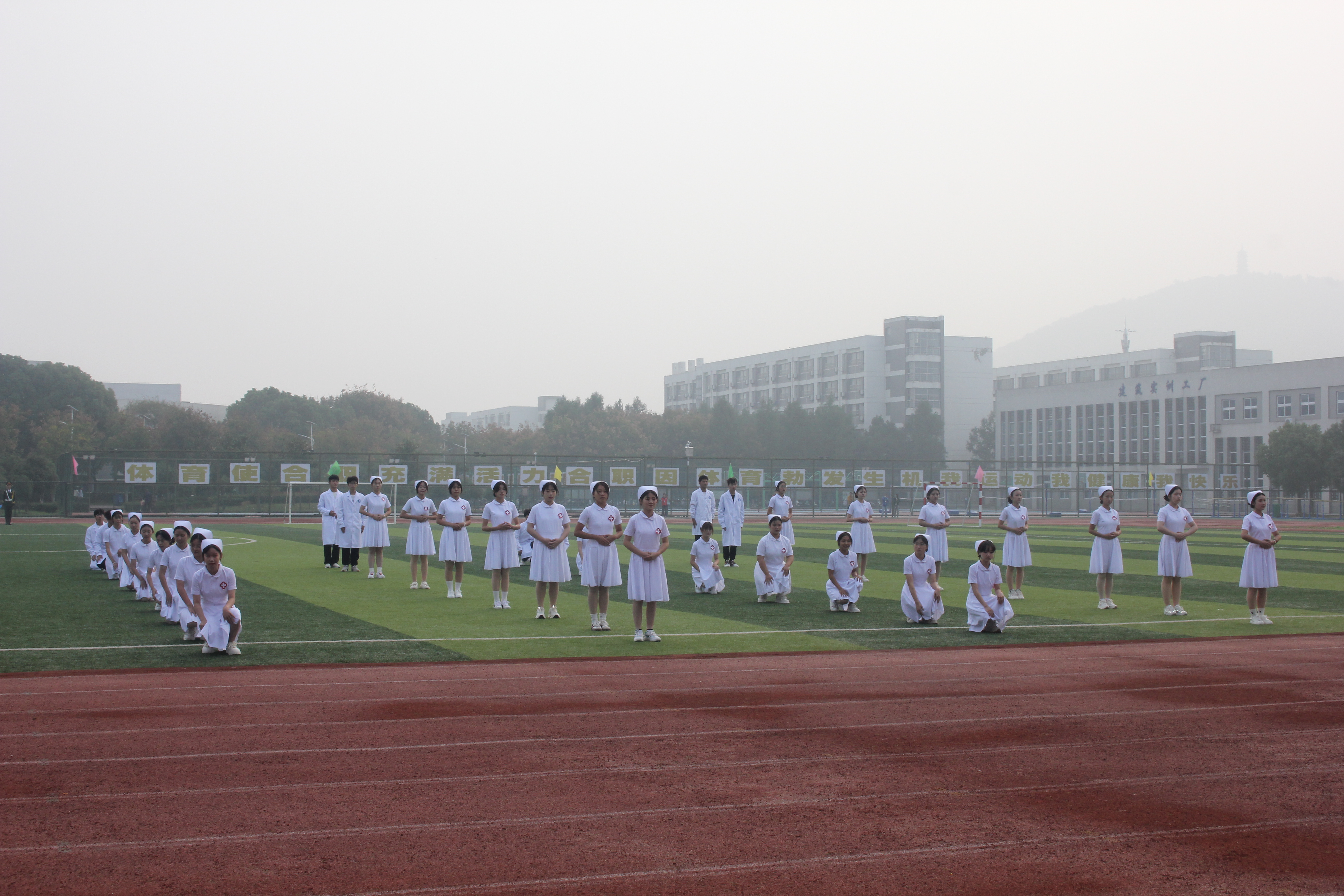 医学院良好的精神风貌在运动会第一天的开幕式表演里就得到了充分的体现。在81人组成的表演方阵中,医学院学子为大家带来洗手操、心肺复苏操、职业礼仪展示,运动与专业碰撞出来的绚丽火花收获全场观众的称赞。在这两天的激烈角逐里,医学院运动健儿们奋勇冲刺、顽强拼搏;志愿者们恪尽职守,真诚服务;各班观众文明观赛,为运动员们加油助威。运动会全程气氛热烈、秩序井然,充分展示了该院学子良好的凝聚力、向心力与战斗力。24康复2班肖弘虞、22临床3班尹伊美分别破校男、女子跳高记录;22康复3班张磊破校男子1500米记录。