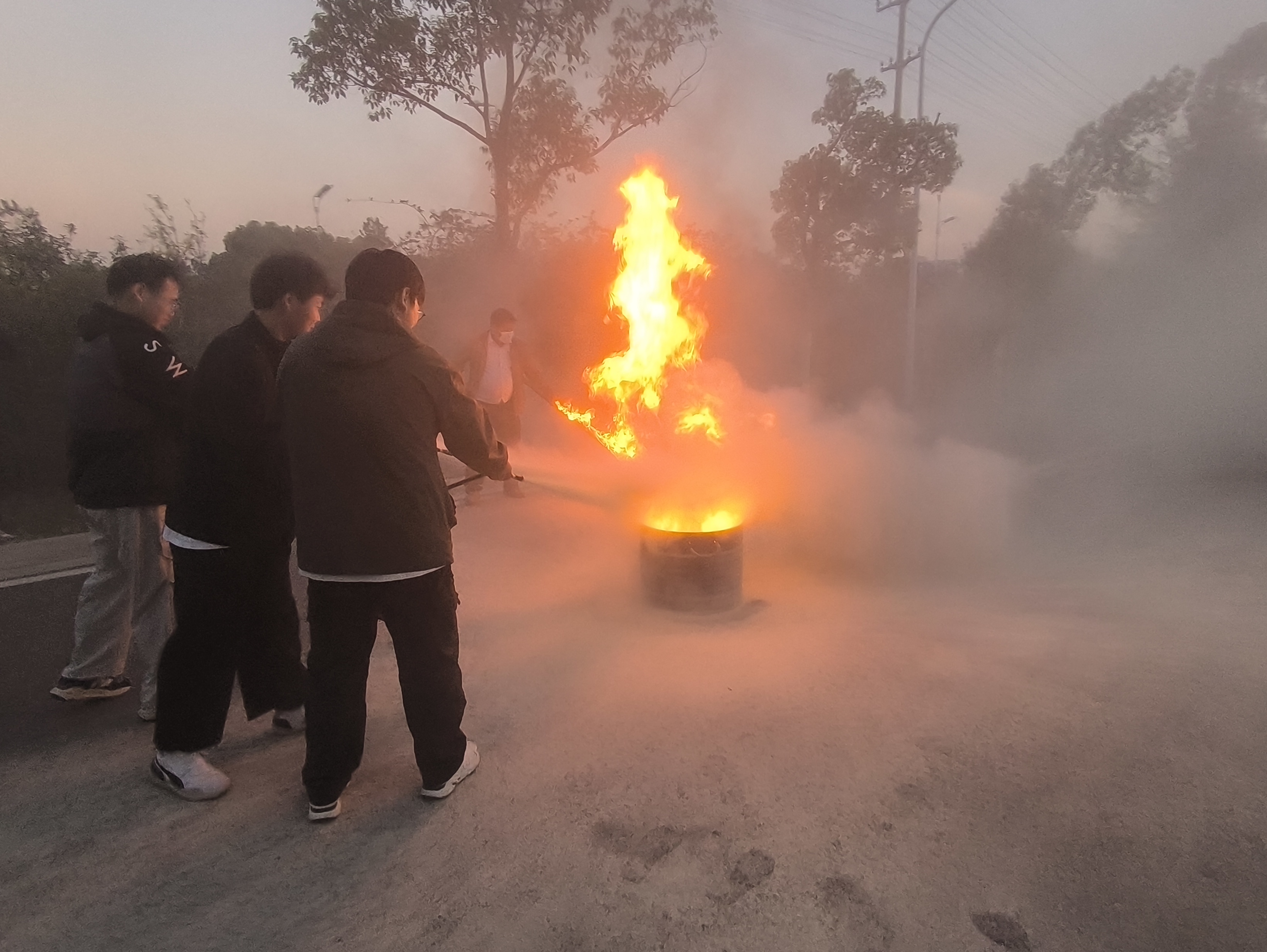 第二阶段现场所实操演练,由24级各班级寝室长参加实践操作,练习应急能力,在演练环节中,唐工详细介绍常用消防设备如灭火器、消火栓的正确使用方法,同学们也在唐老师的指导下纷纷上前尝试,依次上前用灭火器对准火源,快速的将明火扑灭,进一步加深了大家对消防知识的理解和实操掌握。