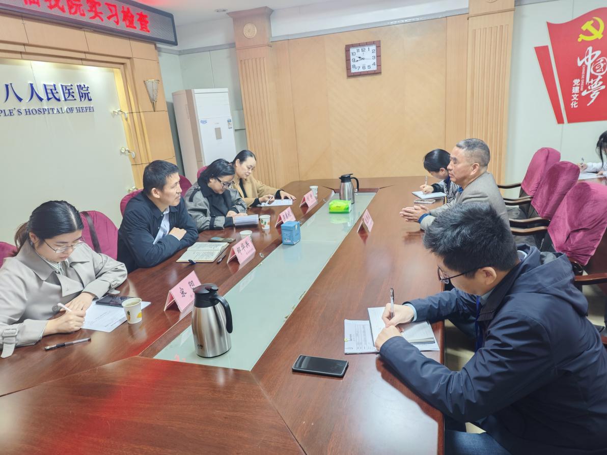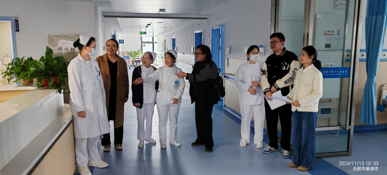 11月13日,医学院党总支副书记(主持工作)邹华兵、党总支副书记梁春艳及实习指导老师刘静、宋阳一行前往合肥市第八人民医院开展实习中期检查活动,深入了解实习生在实习期间的学习、工作、生活情况。