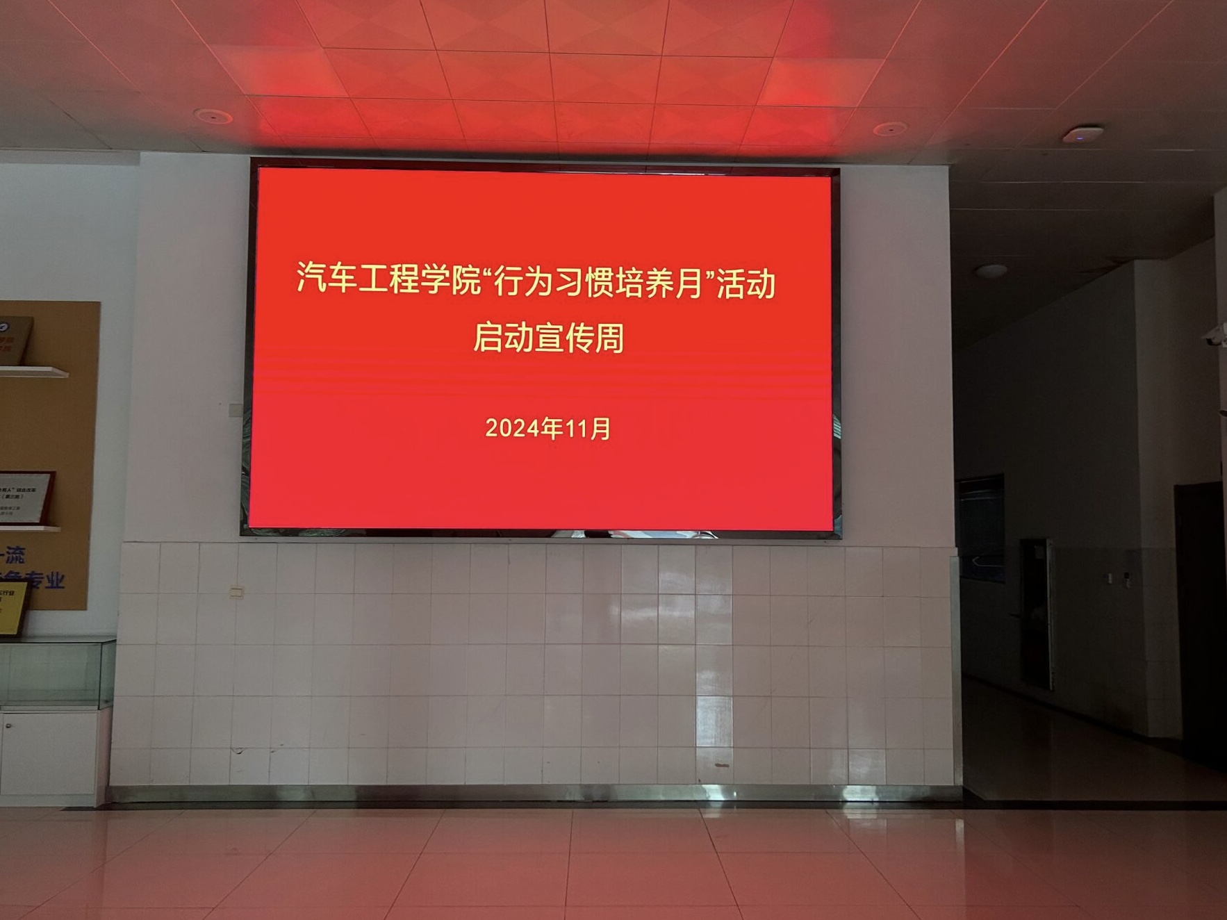 会议提出,汽车工程学院自11月12日起至12月15号面向全院师生开展为期一个月的学生行为规范培养月活动。活动分为宣传动员、自查自纠、落实整改三个阶段,旨在通过一次动员大会、一次主题班会、一次网络宣传、一次板报宣传、一场行为养成活动、一份自我评价、一次活动研讨等七个一系列活动,旨在引导学生从日常小事做起,逐步养成良好的行为习惯。