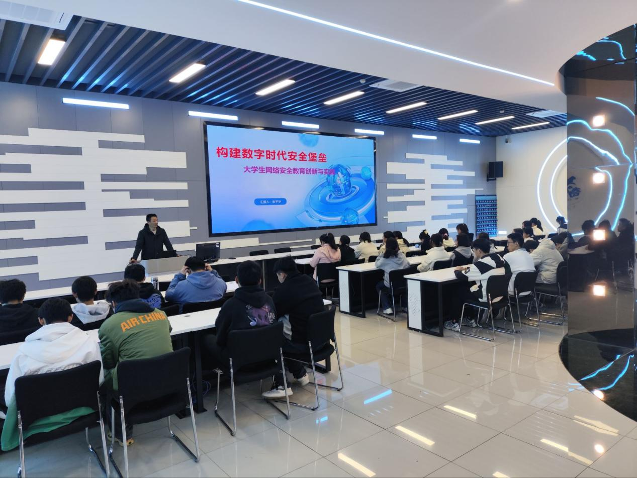 在数字化时代的背景下,网络安全与国防教育的重要性日益凸显,成为国家发展不可或缺的保障。网络安全不仅是数字时代的“生命线”,更是维护国家稳定、社会安宁和人民福祉的关键基石。为了提升伟德官网师生的网络安全意识,强化大学生网络安全教育,11月20日下午,信息工程与传媒学院张平华教授在轨道楼四楼为全校师生做了一场主题为《构建数字时代安全堡垒——大学生网络安全教育创新与实践》的学术讲座。