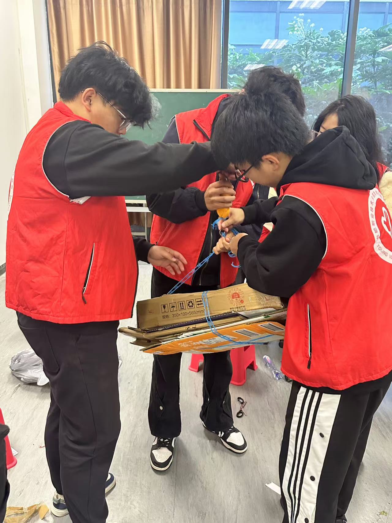 在本次活动中,志愿者们发挥了关键作用,不仅细心地对送来的纸壳进行分类整理,还向同学们宣传环保知识。他们耐心地讲解废旧纸壳回收利用的重要意义等,例如每回收一吨纸壳可以节约大量木材资源,减少树木砍伐,同时还能降低造纸过程中的能源消耗和污染排放。通过志愿者们生动有趣的讲解,使同学们更加深刻地认识到环保行动就在日常生活的点滴之中。