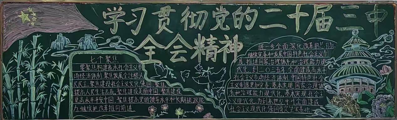 此次黑板报评比活动不仅是为了提高学生的书写和出板报技能,更是为了促进学生的全面发展和协作精神,同时加强班级文化氛围的建设。通过这种形式,学生们能够更好地理解和领会党的二十届三中全会精神内涵,从而在实现中华民族伟大复兴的征程中勇担时代使命。(供稿:生物工程学院 季学强 初审:周婷 审核:杨璨)