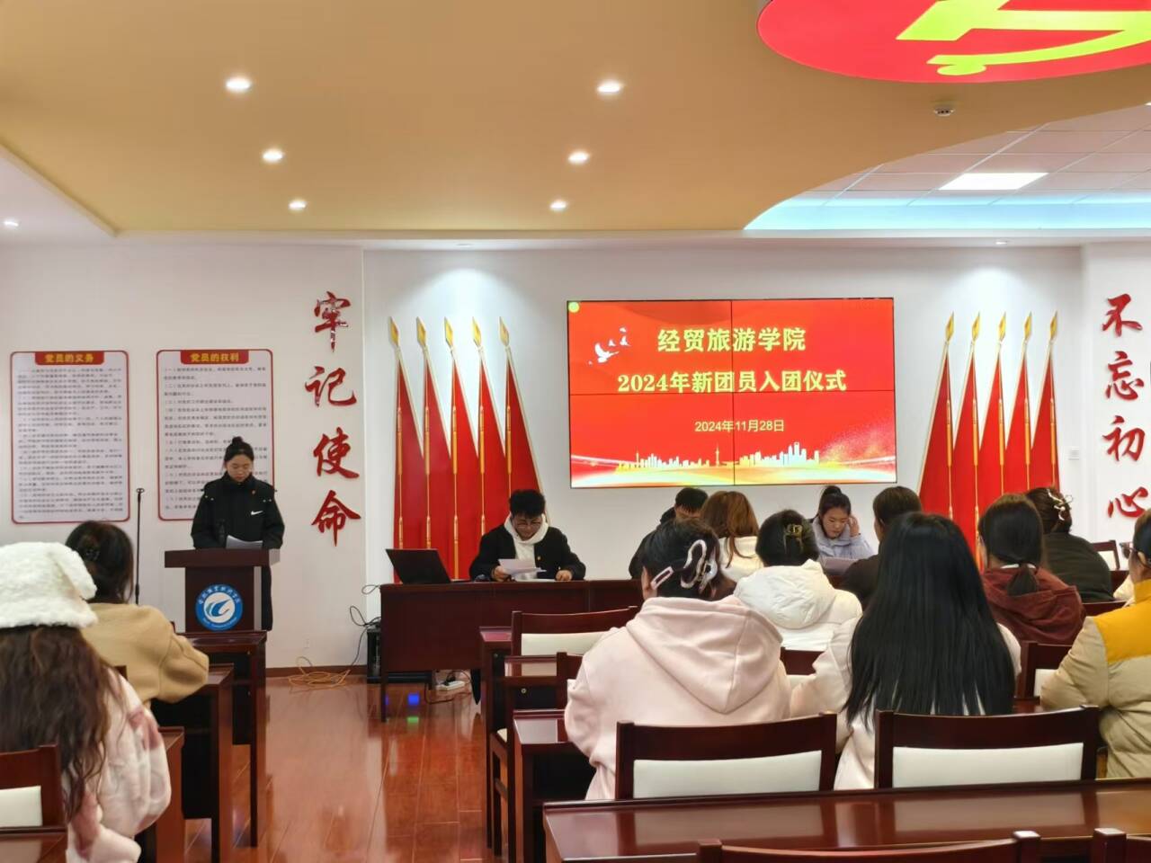 为坚定青年学生理想信念,引领团员青年永远跟党走,经贸旅游学院团总支于11月29日下午在经贸楼党性体验馆为新团员举行了入团仪式,此次仪式由杨昇同学主持。