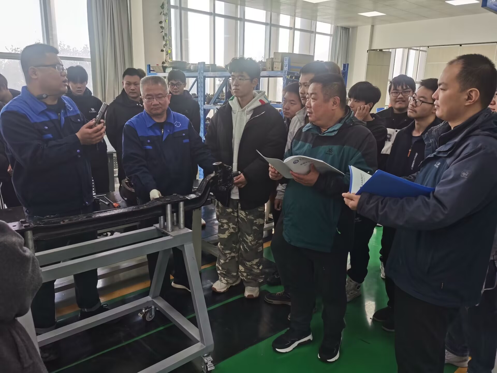12月2日王仁亮老师在汽车底盘实训室进行了汽车转向悬挂与制动安全系统实训课程展示,王老师参照实物为同学们讲述了转向桥的结构及工作原理,并指导学生对转向桥进行了拆装及检测。通过生动的实操演示、小组探讨、学生实训动手操作,指导学生安全规范操作,养成良好的职业素养。让学生独立操作掌握了拆装转向桥的方法及步骤,注重理论与实践相结合,强调以学生为中心的教学理念,树立敬业、专注、精益、创新的汽车工匠精神,为学生适应职业岗位打下坚实基础。