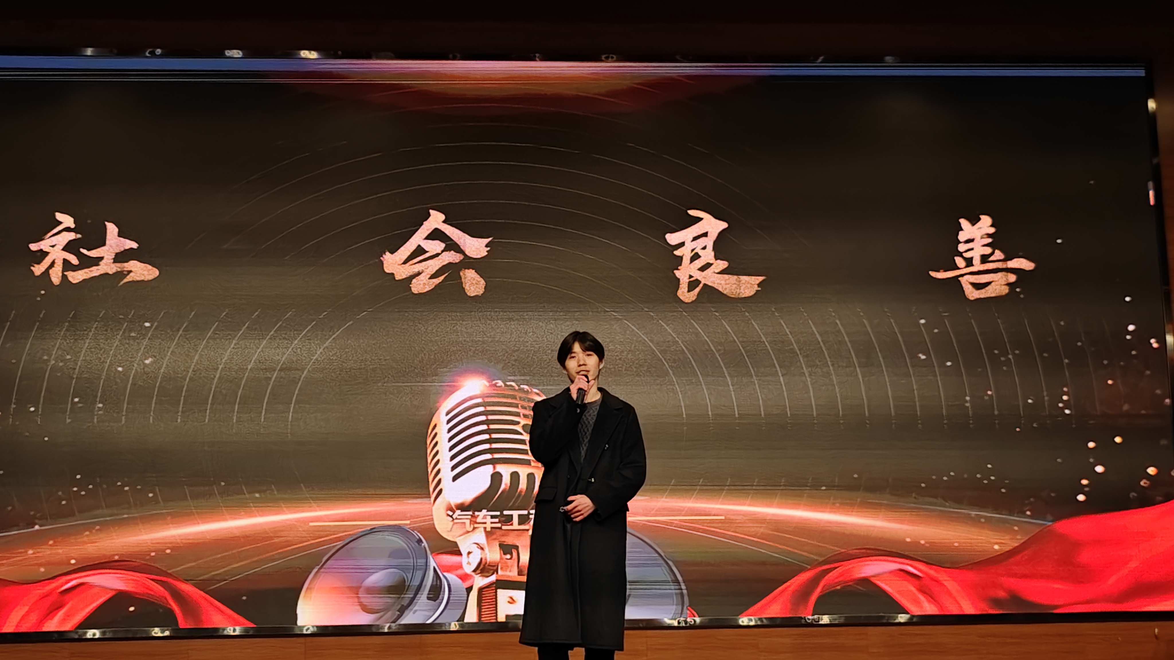 为提升学生的综合素质,展现大学生的文化艺术素质和健康向上的精神风貌,为热爱播音与主持艺术的同学们提供展示自我的机会,促进校园文化发展,展现青春活力,12月11号下午三点,汽车工程学院在大学里活动中心二楼举办第三届主持人大赛决赛,汽车工程学院党总支副书记(负责工作)刘靖、副院长(主持工作)许鹏、党总支副书记邹坤、团总支书记毛炜、学管办老师担任评委,300余名学生观看比赛。