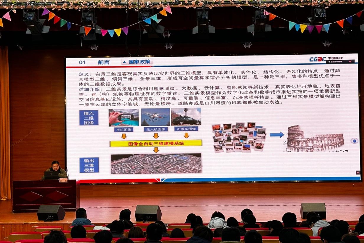 为使伟德官网师生了解实景三维建模技术的应用现状,进一步发挥产业教授的引领指导作用,12月18日下午,建筑工程学院举办题为“实景三维建模技术应用”的“弘徽讲堂”专题讲座。此次讲座邀请到该院聘任的省级产业教授——中能建建筑集团有限公司正高级工程师顾客。讲座由该院副院长邓勋主持,该院相关专业教师和2023级在校学生共同聆听了此次讲座。