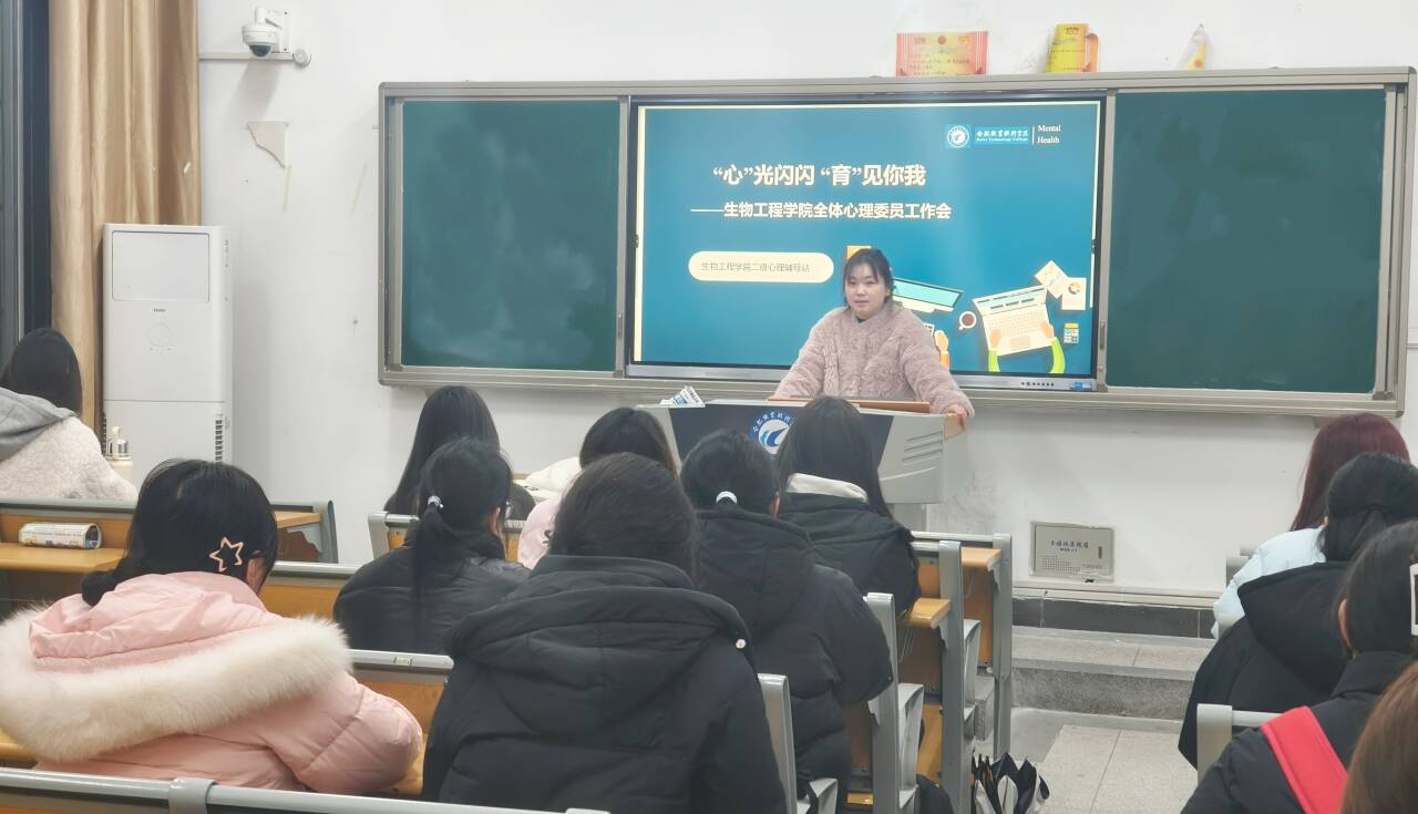 为深入推进大学生心理健康教育,强化朋辈心理工作队伍建设,充分发挥朋辈心理工作者的桥梁和纽带作用,推动心理健康教育工作规范化、专业化、科学化发展, 2月20日晚,生物工程学院二级心理辅导站在教学楼A107成功举办期初心理委员工作会。会议由该院二级心理辅导站负责人汪纬静老师主讲,该院全体心理委员参加。