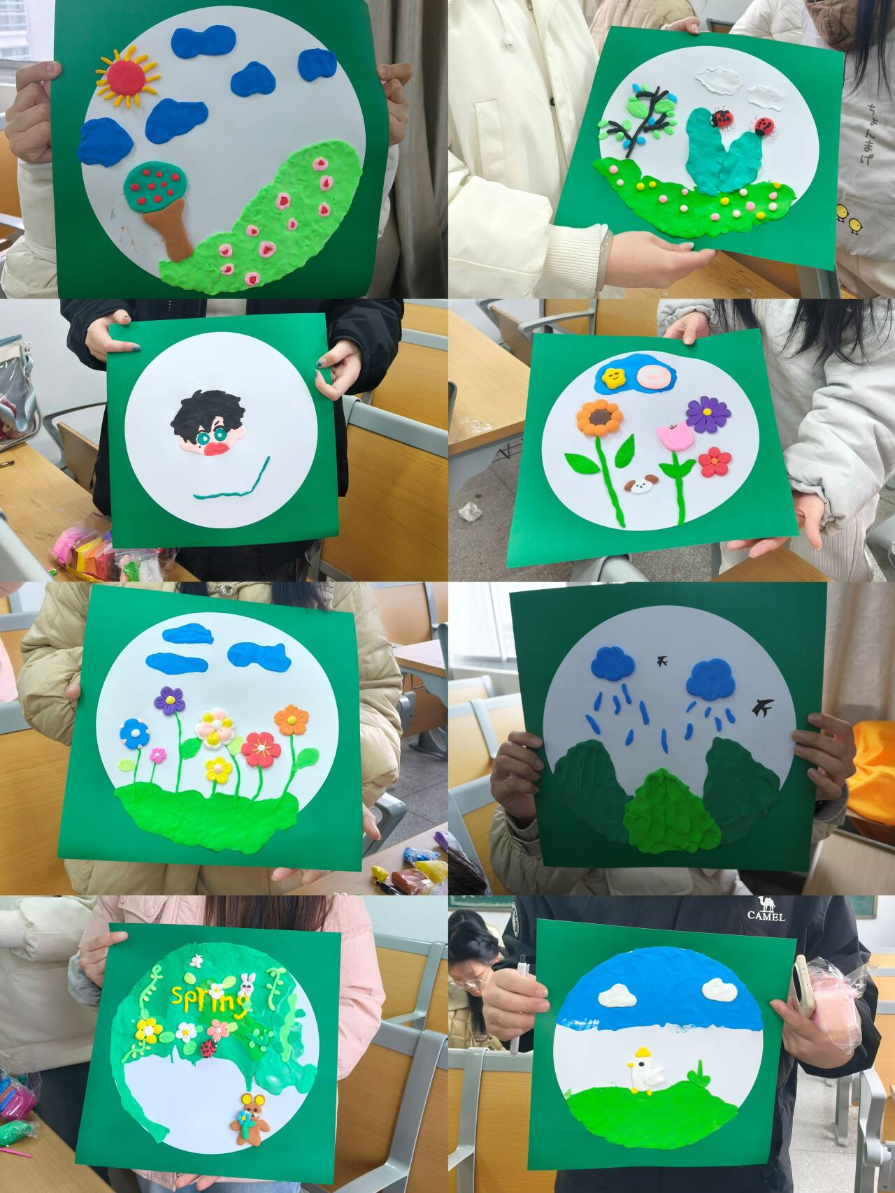 活动的最后,同学们以“惊蛰”为主题,用粘土在纸上进行创意作画。大家充分发挥想象力和创造力,将心中对春天的理解和感悟融入到作品中。一幅幅充满创意的画作,不仅展现了同学们的艺术才华,更体现了他们对生命的热爱和对未来的憧憬。