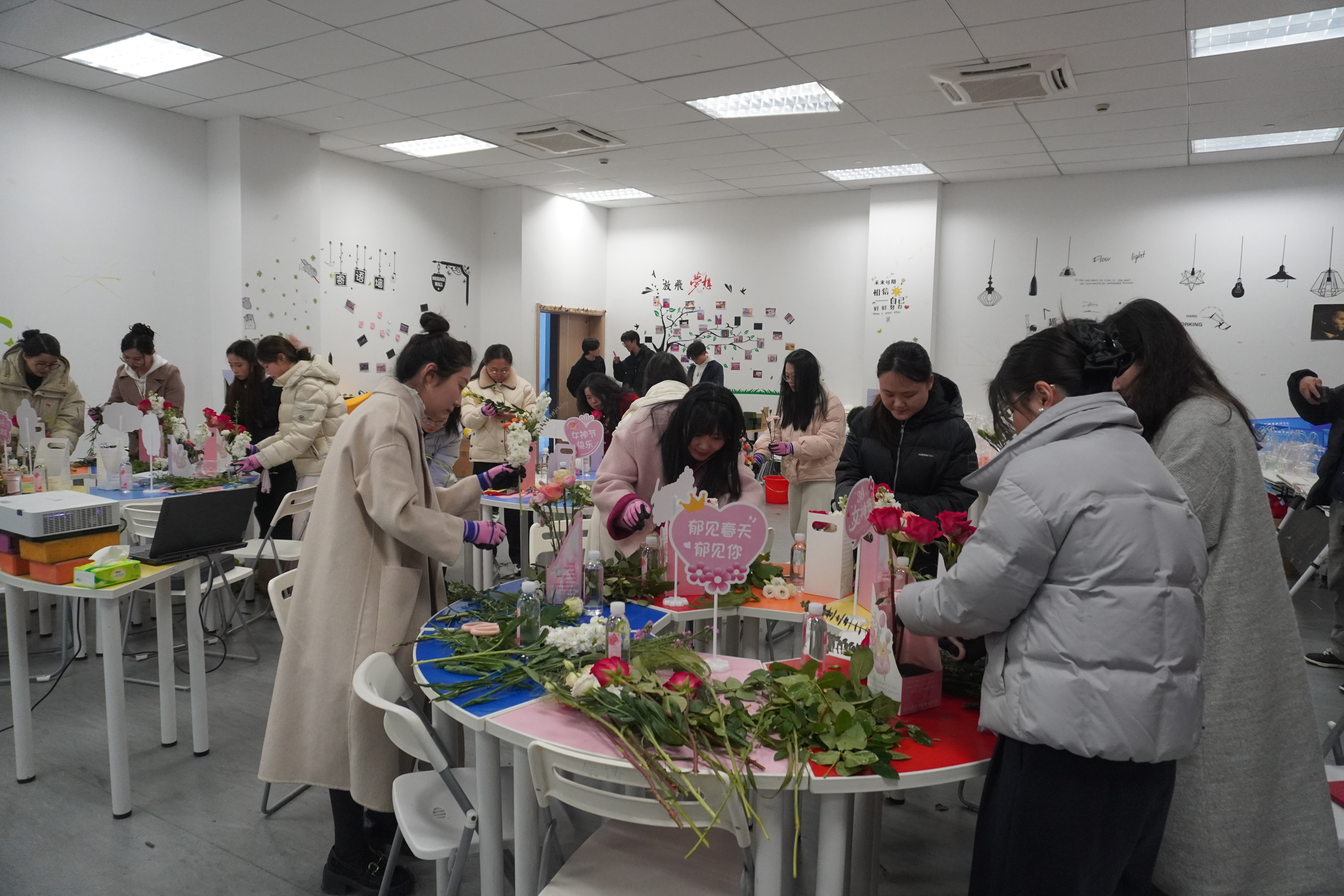 交流研讨结束后,师生们携手开展主题插花活动,大家精心搭配、细致修剪,感受美、欣赏美、创造美。