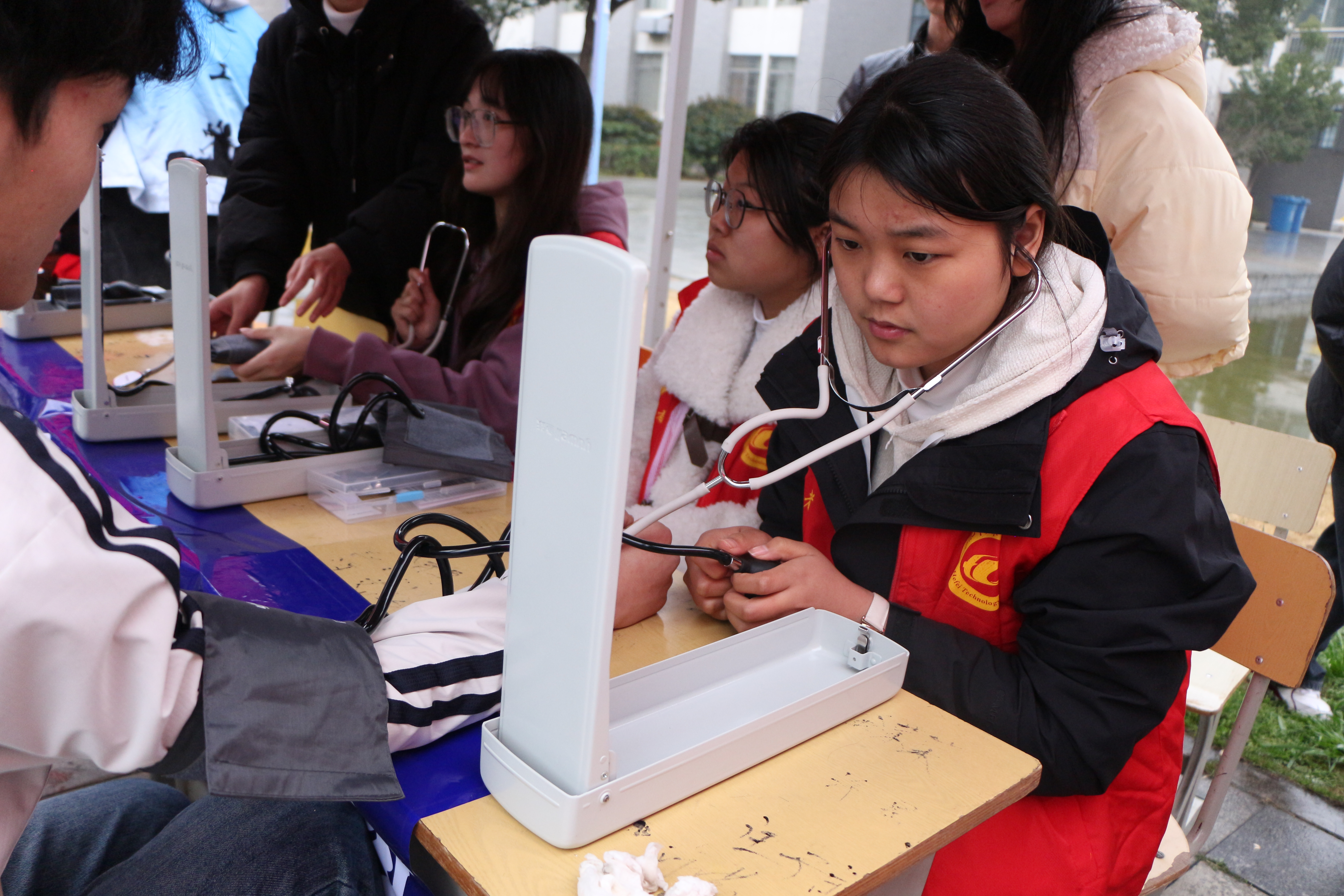 在“爱心量度守健康”活动现场,医学院志愿者们充分发挥专业优势,为师生提供血压测量服务,并耐心普及健康知识。该项目不仅展现了医学院学子扎实的专业技能,更体现了“以所学服务社会”的志愿精神。参与者纷纷表示,活动既贴心又实用,切实感受到志愿服务的温暖力量。