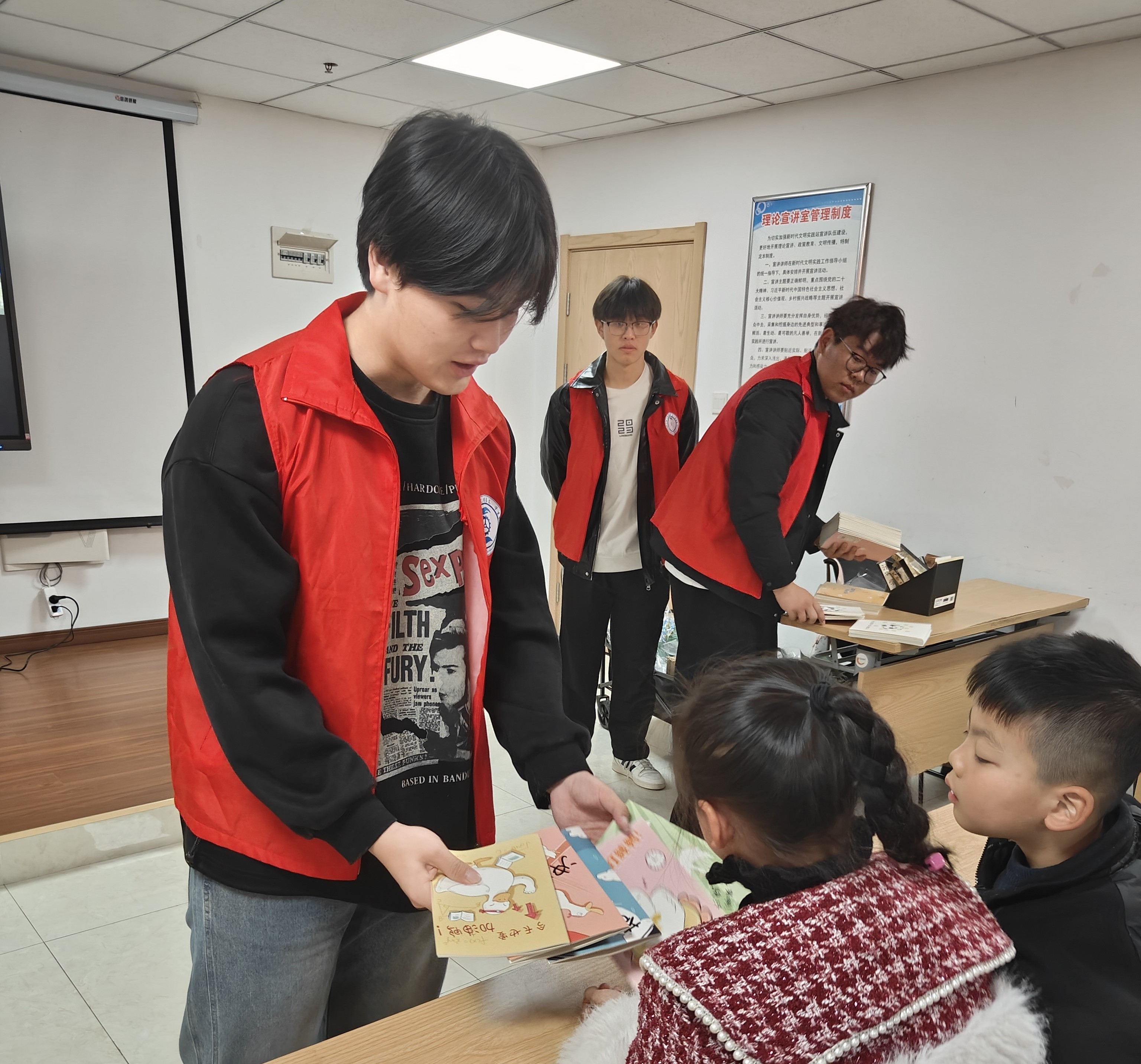 活动开始,志愿者们首先为孩子们播放了动画短片《雷锋的故事》。影片通过真实影像与动画结合的形式,再现了雷锋同志雨中护送老人、省吃俭用支援灾区等感人事迹。观影结束后,志愿者围绕影片内容展开互动问答:“雷锋叔叔为什么总戴着补丁帽子?”“雷锋叔叔最喜欢帮助哪些人?”孩子们争先恐后地举起小手,稚嫩的回答中充满真挚:“雷锋叔叔的帽子补了又补,是因为他要省下钱帮助更需要的人!”答对问题的小朋友,接过奖品笔记本和彩笔,脸上绽放出灿烂的笑容。