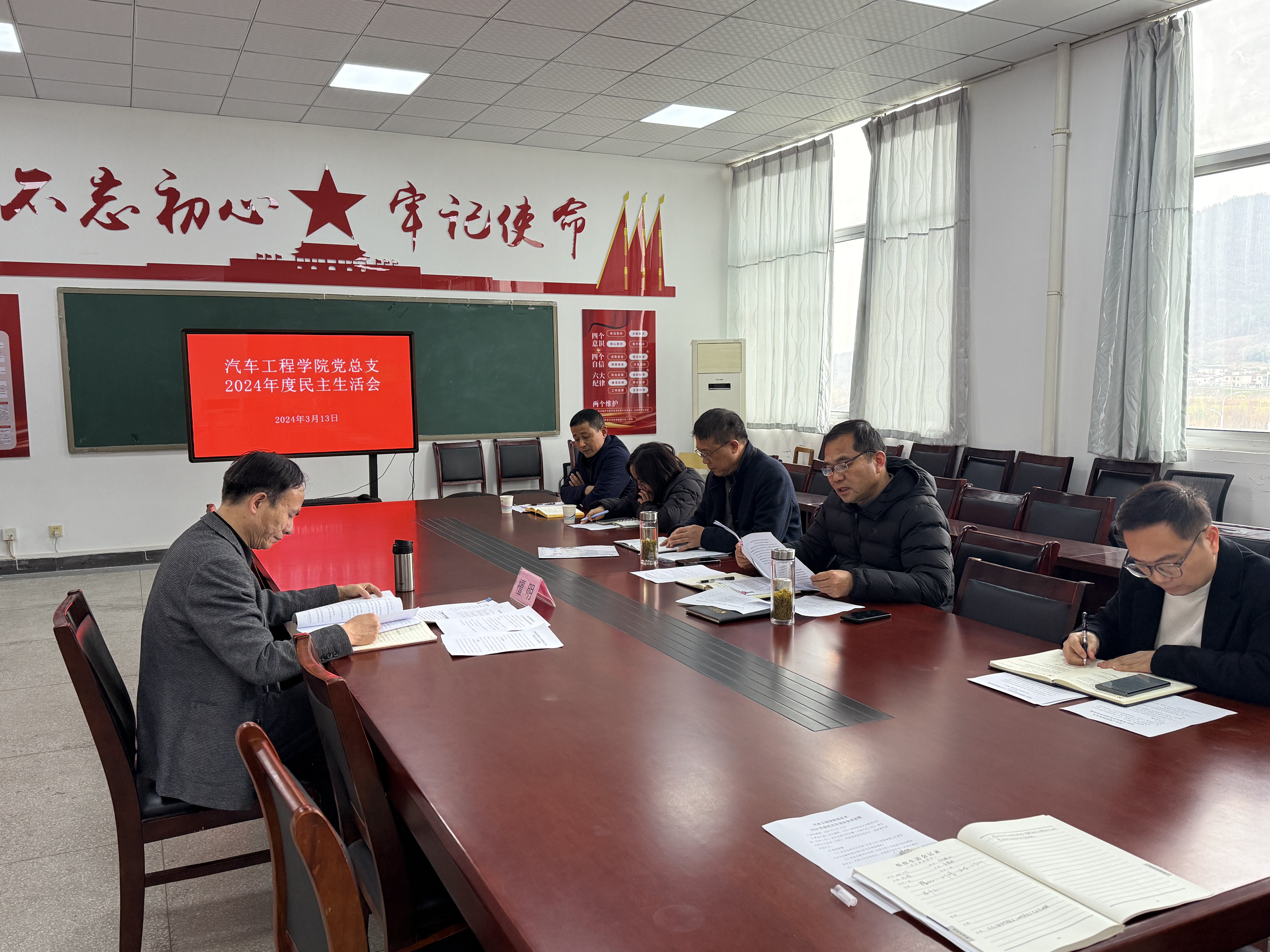 为认真学习贯彻习近平新时代中国特色社会主义思想和党的二十届三中全会精神,进一步严肃党内政治生活,2025年3月13日下午,汽车工程学院党总支在汽车楼405党员活动日召开2024年度民主生活会,校党委副书记、校长檀明到会指导,汽车工程学院党总支委员出席会议,会议由党总支副书记刘靖(负责工作)主持。