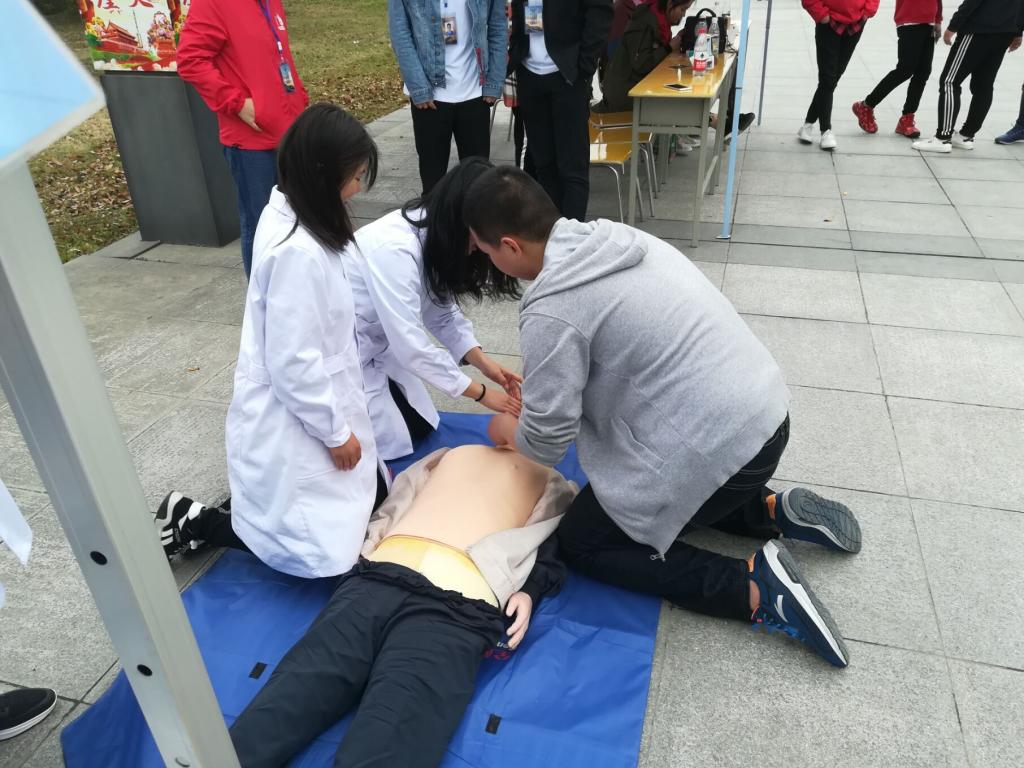 展示活动主要分两部分,一是健康守护,主要是给2018年分类招生考试的同学及家长提供健康咨询服务和血压测量服务;二是健康知识宣教和体验,主要是宣传急救知识,演示重要急救技术——心肺复苏,并提供模型给其体验心肺复苏。