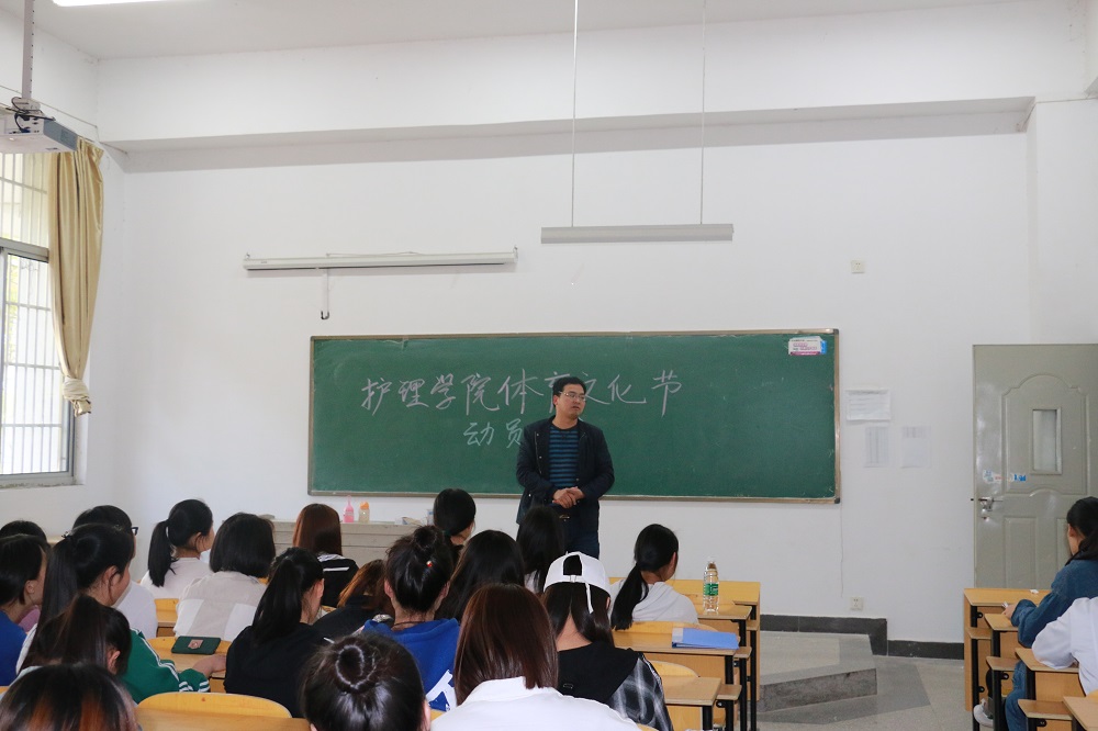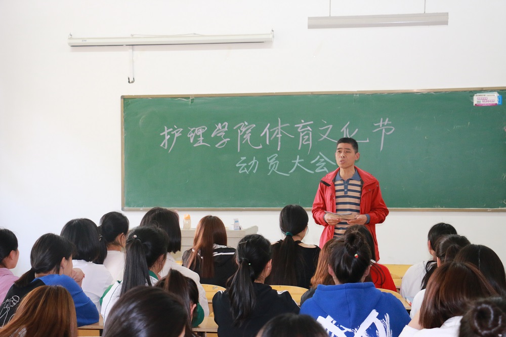 为丰富学生课余文化生活,增强学生体质,培养学生团结协作意识,护理学院积极组织学生参加学校第四届体育文化节。4月16日下午,护理学院在教学楼D-101召开体育文化节动员大会,学院党总支书记张明、团总支书记龚光俊和学生干部、运动员代表等一百余人参加了动员大会,会议由团总支书记龚光俊主持。